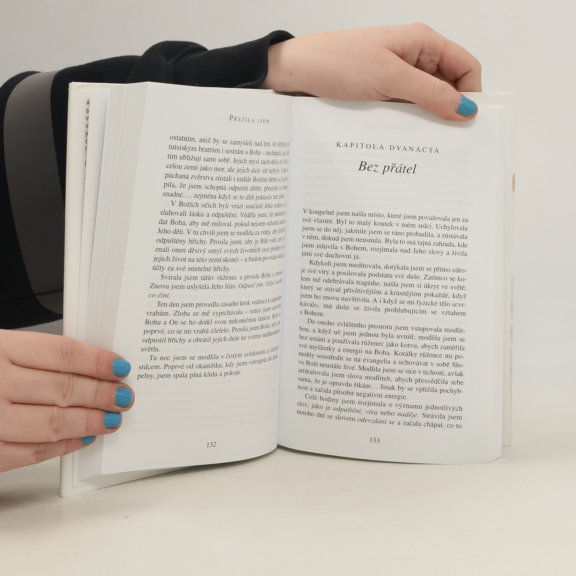 Otevřená výpověď o zradě, nenávisti a odpuštění. Až do osudného dne v roce 1994 žila Immaculée v domnění, že se narodila v ráji. Rwanda, s nádhernou krajinou, horami a jiskřícími jezery, byla považována za "země věčného jara". Jak se však může ráj proměnit v peklo? Immaculée vyrůstala v milující rodině, s třemi bratry a podporujícími rodiči, kteří dbali na její vzdělání. Když získala stipendium na univerzitě, celá rodina oslavovala. Když se v roce 1994 vrátila domů na prázdniny, naposledy viděla své blízké naživu. V zemi vypukla genocida, která trvala tři měsíce a zabila téměř milion lidí. Prezident vyzval k vyhlazení Tutsiů a mnozí ho poslechli. Ozbrojené skupiny pustošily krajinu, zatímco zfanatizované davy lynčovaly nevinné. Immaculée se během tohoto vražedného řádění ukrývala v malé koupelně v domě místního pastora, kde se na prostoru zhruba metr krát metr tísnilo osm žen. Její příběh je svědectvím o hrůzách genocidy, ale také o síle odpuštění a přežití.