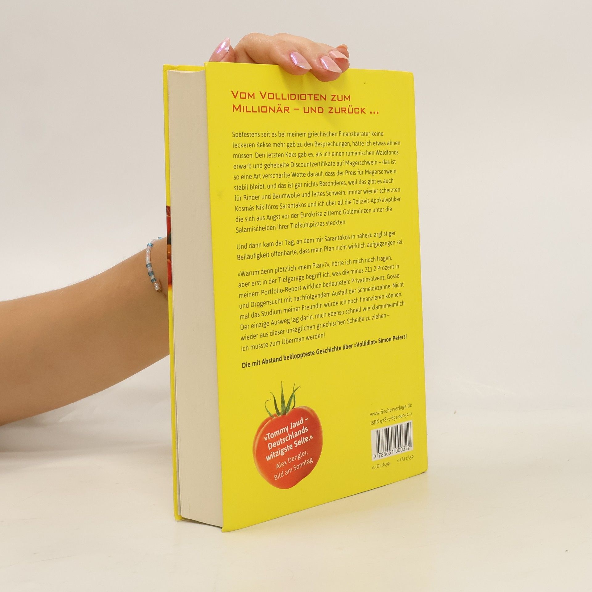 Vom Vollidioten zum Millionär – und zurück … Spätestens seit es bei meinem griechischen Finanzberater keine leckeren Kekse mehr gab zu den Besprechungen, hätte ich etwas ahnen müssen. Den letzten Keks gab es, als ich einen rumänischen Waldfonds erwarb und gehebelte Discountzertifikate auf Magerschwein – das ist so eine Art verschärfte Wette darauf, dass der Preis für Magerschwein stabil bleibt, und das ist gar nichts Besonderes, weil das gibt es auch für Rinder und Baumwolle und fettes Schwein. Immer wieder scherzten Kosmás Nikifóros Sarantakos und ich über all die Teilzeit-Apokalyptiker, die sich aus Angst vor der Eurokrise zitternd Goldmünzen unter die Salamischeiben ihrer Tiefkühlpizzas steckten. Und dann kam der Tag, an dem mir Sarantakos in nahezu arglistiger Beiläufigkeit offenbarte, dass mein Plan nicht wirklich aufgegangen sei. »Warum denn plötzlich ›mein Plan‹?‹, hörte ich mich noch fragen, aber erst in der Tiefgarage begriff ich, was die minus 211,2 Prozent in meinem Portfolio-Report wirklich bedeuteten: Privatinsolvenz, Gosse und Drogensucht mit nachfolgendem Ausfall der Schneidezähne. Nicht mal das Studium meiner Freundin würde ich noch finanzieren können. Der einzige Ausweg lag darin, mich ebenso schnell wie klammheimlich wieder aus dieser unsäglichen griechischen Scheiße zu ziehen – ich musste zum Überman werden! Die mit Abstand bekloppteste Geschichte über »Vollidiot« Simon Peters!