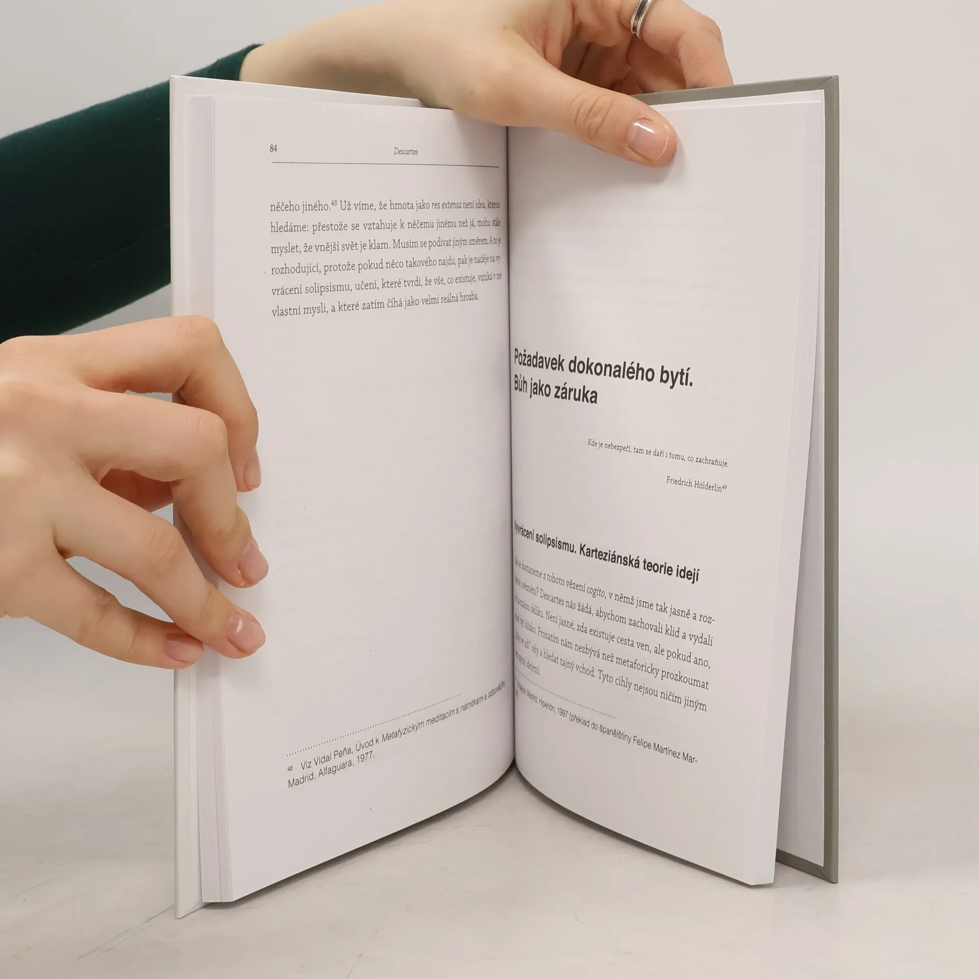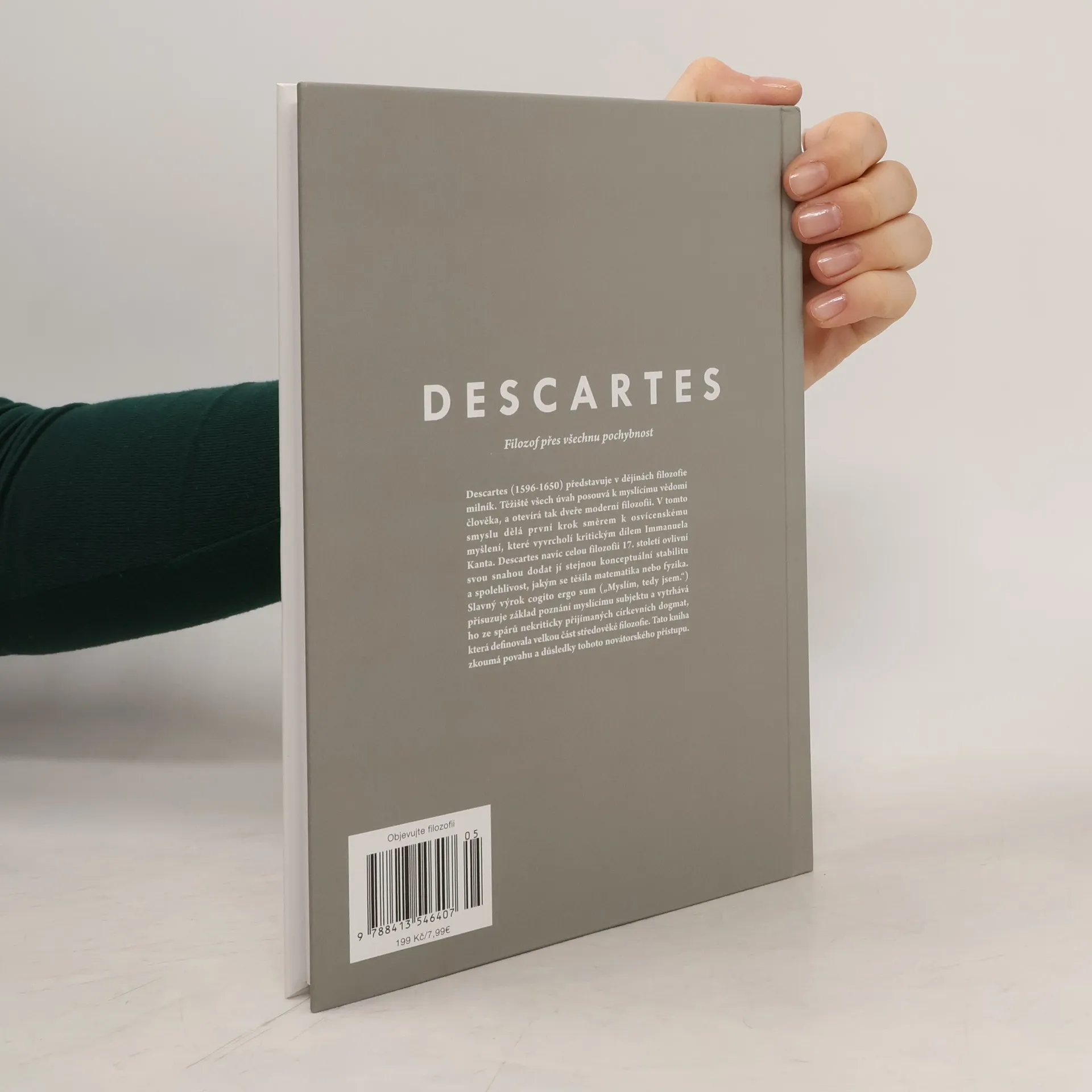 Descartes (1596-1650) představuje v dějinách filozofie milník. Těžiště všech úvah posouvá k myslícímu vědomí člověka, a otevírá tak dveře moderní filozofii. V tomto smyslu dělá první krok směrem k osvícenskému myšlení, které vyvrcholí kritickým dílem Immanuela Kanta. Descartes navíc celou filozofii 17. století ovlivní svou snahou dodat ji stejnou konceptuální stabilitu a spolehlivost, jakým se těšila matematika nebo fyzika. Slavný výrok cogito ergo sum ("Myslím, tedy jsem") přisuzuje základ poznání myslícímu subjektu a vytrhává ho ze spárů nekriticky přijímaných církevních dogmat, která definovala velkou část středověké filozofie. Tato kniha zkoumá povahu a důsledky tohoto novátorského přístupu.