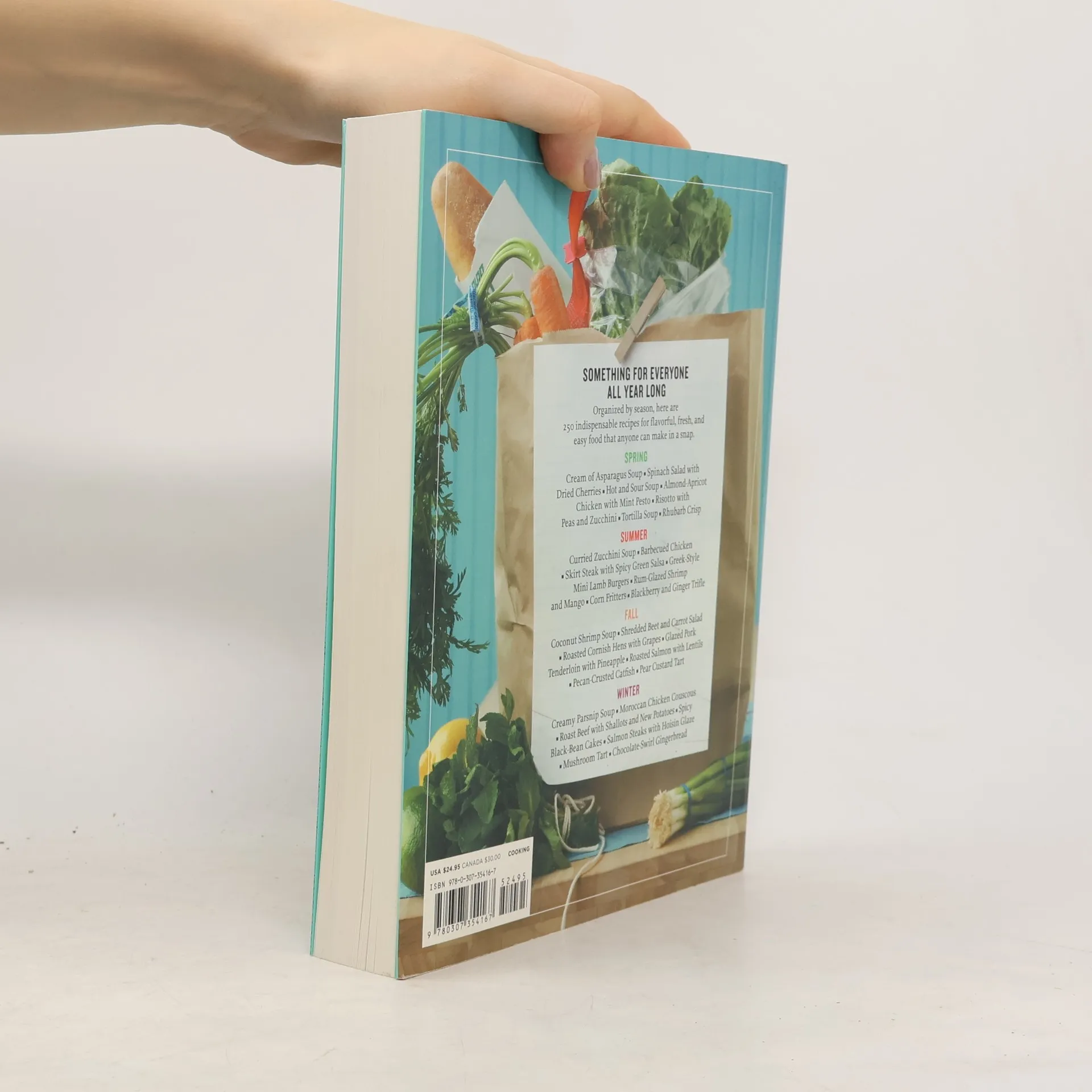 No matter how busy you are, at the end of the day you want fresh, flavorful meals that are easy to prepare. And you want lots of choices and variations—recipes that call for your favorite foods and take advantage of excellent (and readily available) ingredients. In the first book from the award-winning magazine Everyday Food, you’ll find all of that: 250 simple recipes for delicious meals that are quick enough to make any day of the week. Because a change in weather affects how we cook as much as what we cook, the recipes in Everyday Food are arranged by season. For spring, you’ll find speedy preparations for main-course salads, chicken, and poached salmon that minimize time spent at the stove; summer features quick techniques for grilling the very best burgers and kabobs as well as no-cook pasta sauces; for fall, there are braised meats and hearty main-course soups; and winter provides new takes on rich one-dish meals, roasts and stews, and hearty baked pastas. Finally, a chapter on basics explains how to make year-round staples such as foolproof roast chicken, risotto, couscous, and chocolate sauce.Designed in a contemporary and easy-to-read format, Everyday Food boasts lush, full-color photography and plenty of suggestions for substitutions and variations. With Everyday Food, even the busiest on-the-go cook can look forward to meals that bring freshness, nutrition, and a range of flavors to dinner all week long.
