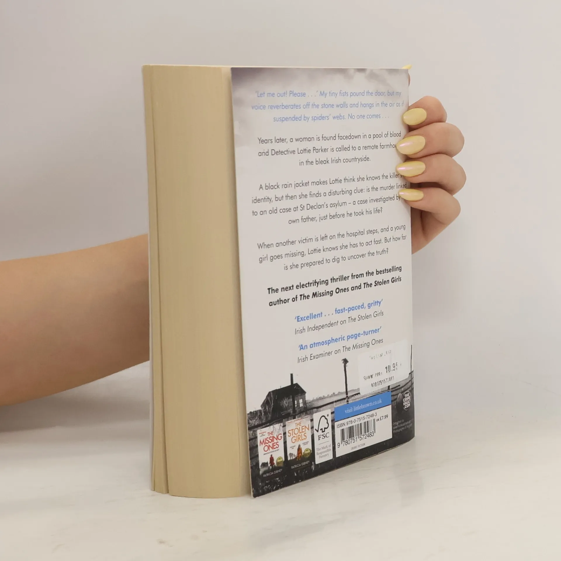 'Let me out! Please . . .' My tiny fists pound the door, but my voice reverberates off the stone walls and hangs in the air as if suspended by spider's webs. No one comes . . . Years later, a woman is found face-down in a pool of blood. Detective Lottie Parker is called to the remote farmhouse in the bleak Irish countryside. Inside, she finds a scene that speaks of uncontrollable rage: glasses smashed, chairs ripped apart, the woman's body broken. A black rain jacket makes Lottie think she knows the killer's identity, but then she finds a disturbing clue: is the murder linked to an old case at St Declan's asylum - a case investigated by her own father, just before he took his life? When another victim is left without her tongue on the hospital steps, and a young girl goes missing, Lottie knows she has to act fast. Can she face her own demons and uncover the truth before another life is taken? An absolutely gripping page-turner from the million-copy bestselling author of Irish Top 10 bestsellers, The Missing Ones and The Stolen Girls. If you love Karin Slaughter, Tess Gerritsen and Helen Fields, you'll be completely hooked.