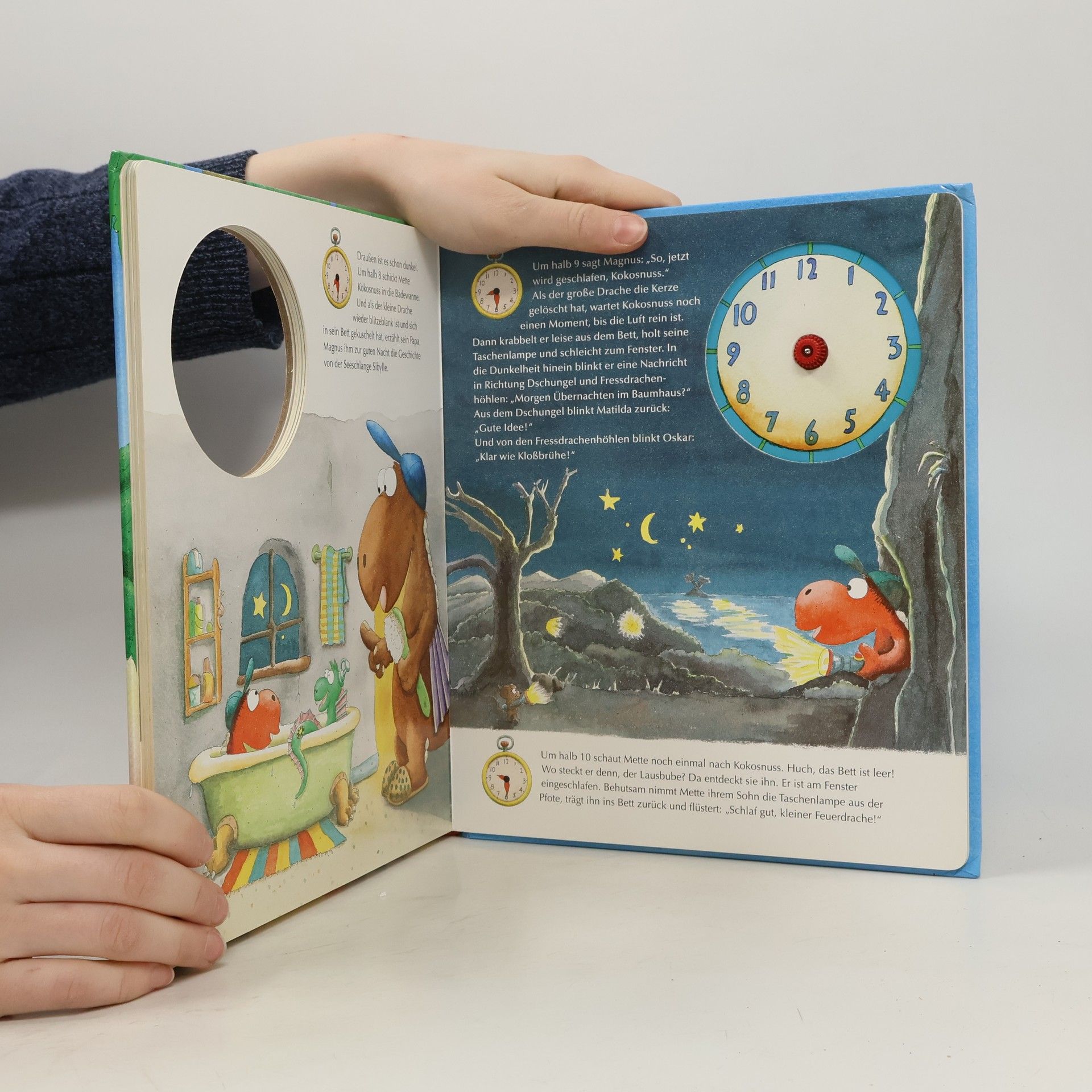 Die Uhrzeit lernen mit dem kleinen Drachen KokosnussAuf der Dracheninsel ist es wie überall: Wenn man in die Schule kommt, lernen kleine Feuerdrachen die Uhrzeit. Kokosnuss erzählt, wann seine Eltern ihn morgens wecken, wann er in die Schule geht und wann er Flugunterricht oder Gefahrenkunde hat. Und am Nachmittag um vier Uhr trifft er sich mit Oskar und Matilda am Strand zum Spielen ...• Spielerisch die Uhr lernen mit dem kleinen Drachen Kokosnuss• Ein Mitmach-Bilderbuch für Kokosnuss-Fans• Bewegliche Zeiger mit Klick-MechanismusAchtung! Verschluckbare Kleinteile. Nicht für Kinder unter 36 Monaten geeignet.