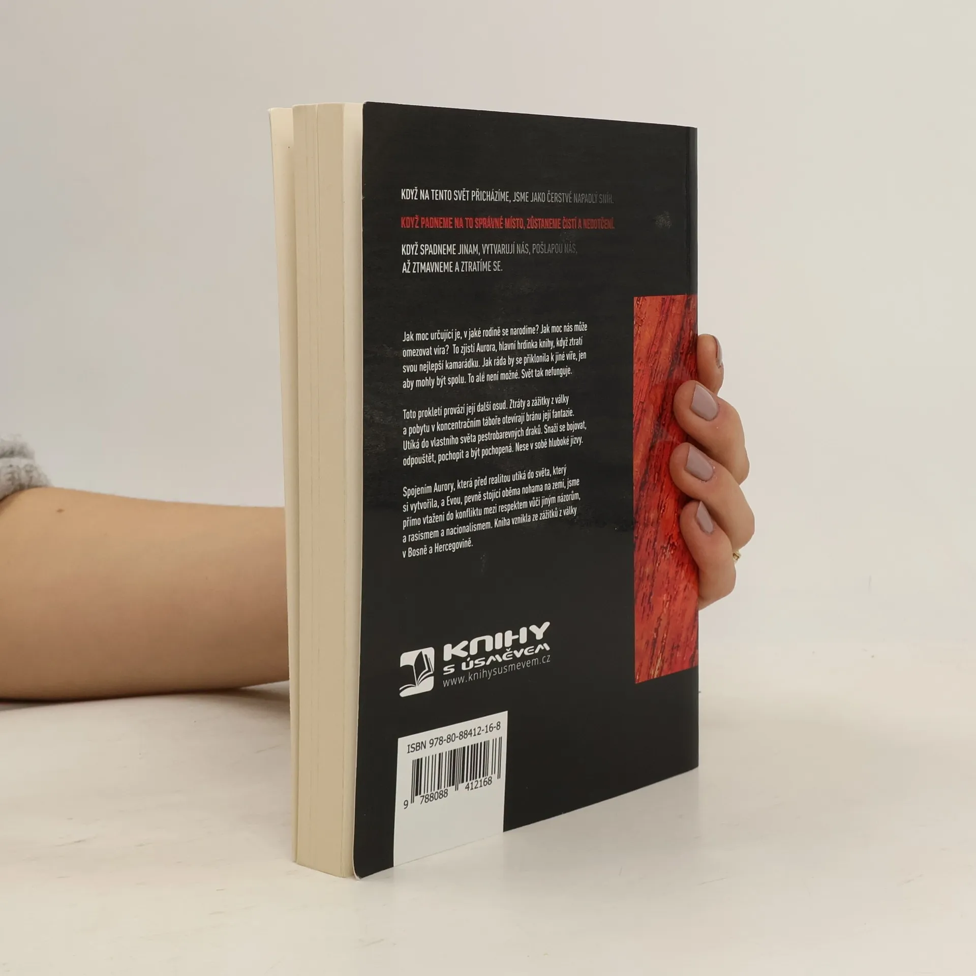 Když na tento svět přicházíme, jsme jako čerstvě napadlý sníh. Když padneme na to správné místo zůstaneme čistí a nedotčení. Když spadneme jinam, vytvarují nás, pošlapou nás až ztmavneme a ztratíme se. Jak moc určující je, v jaké rodině se narodíme? Jak moc nás může omezovat víra? To zjistí Aurora, hlavní hrdinka knihy, když ztratí svou nejlepší kamarádku. Jak ráda by se přiklonila k jiné víře, jak ráda by uctívala jiného draka, jen aby mohly být spolu. To ale není to možné. Svět tak nefunguje. Toto prokletí provází její další osud. Ztráty a zážitky z války a pobytu v koncentračním táboře otevírají bránu její fantazie. Utíká do světa pestrobarevných draků. Snaží se bojovat, odpouštět, pochopit a být pochopená. Nesoucí v sobě hluboké jizvy. Spojením reality se světem draků, jsme přímo vtažení do konfliktu respektu vůči jiným názorům, rasismu a nacionalismu. Kniha vznikla ze zážitků z války v Bosně.