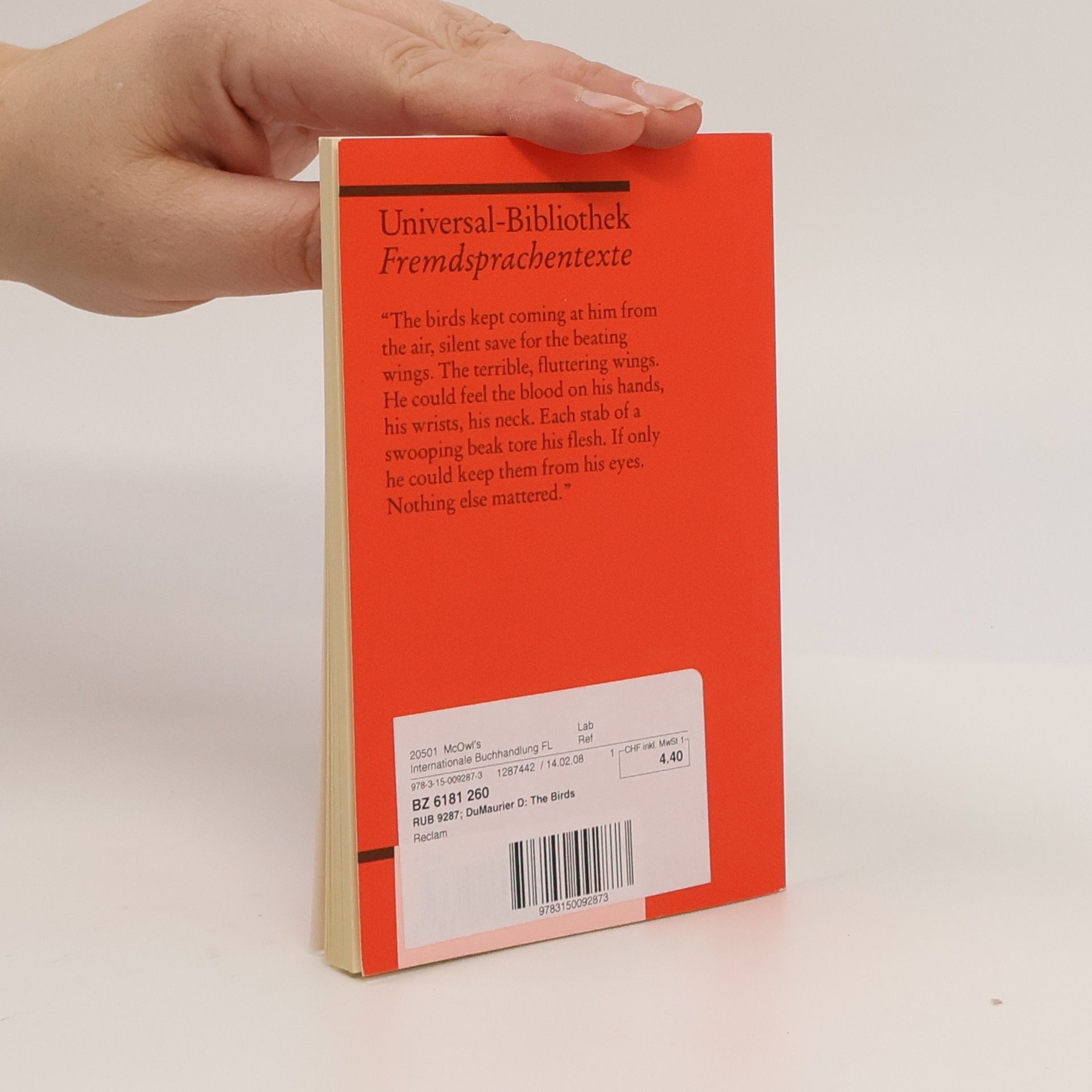 Der Horror, den die Vögel in dem kleinen Küstenort Bodega Bay verbreiten, ist seit Hitchcocks Verfilmung jedem Leser gegenwärtig. Aber natürlich ist da auch noch das Drama zwischen Mitch, Melanie und Anne. Und die Frage des Überlebens bleibt offen. Ungekürzte und unbearbeitete Textausgabe in der Originalsprache, mit Übersetzungen schwieriger Wörter am Fuß jeder Seite, Nachwort und Literaturhinweisen.