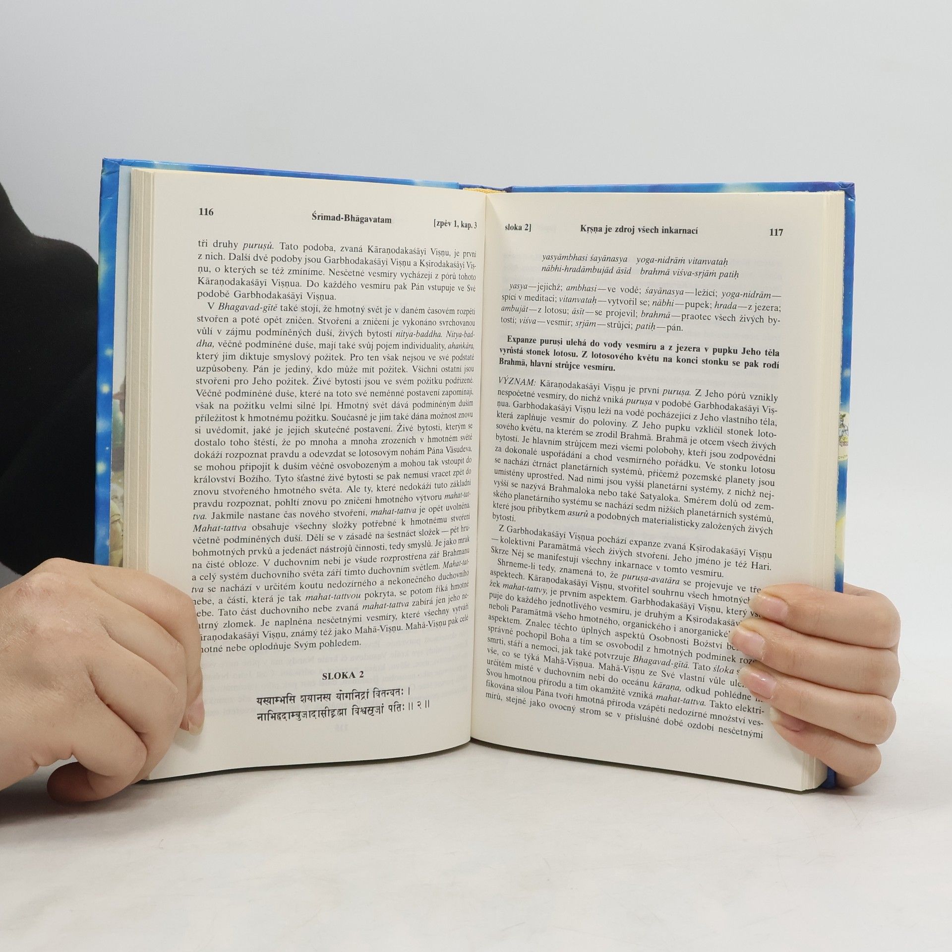 Nábožensko-filozofický text, který dává nahlédnout do indického duchovního odkazu. S původními sanskrtskými texty, přepisem do latinského písma, českými synonymy, překlady a podrobnými výklady.