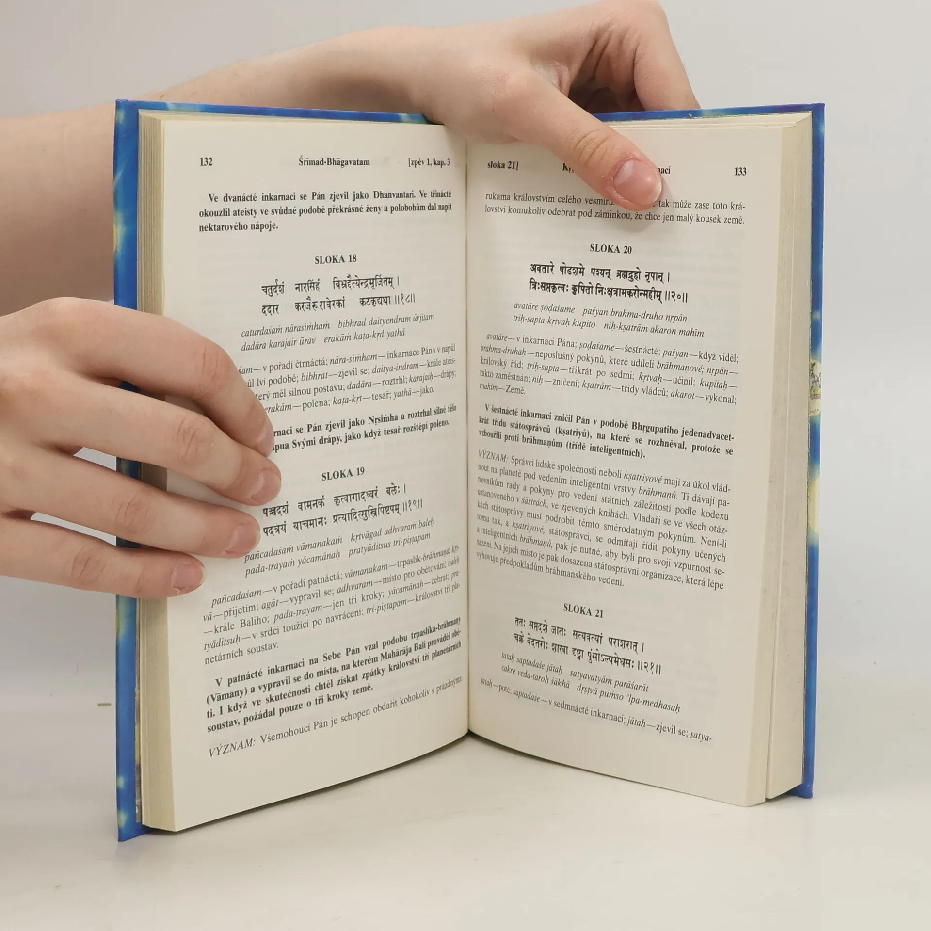 Nábožensko-filozofický text, který dává nahlédnout do indického duchovního odkazu. S původními sanskrtskými texty, přepisem do latinského písma, českými synonymy, překlady a podrobnými výklady.