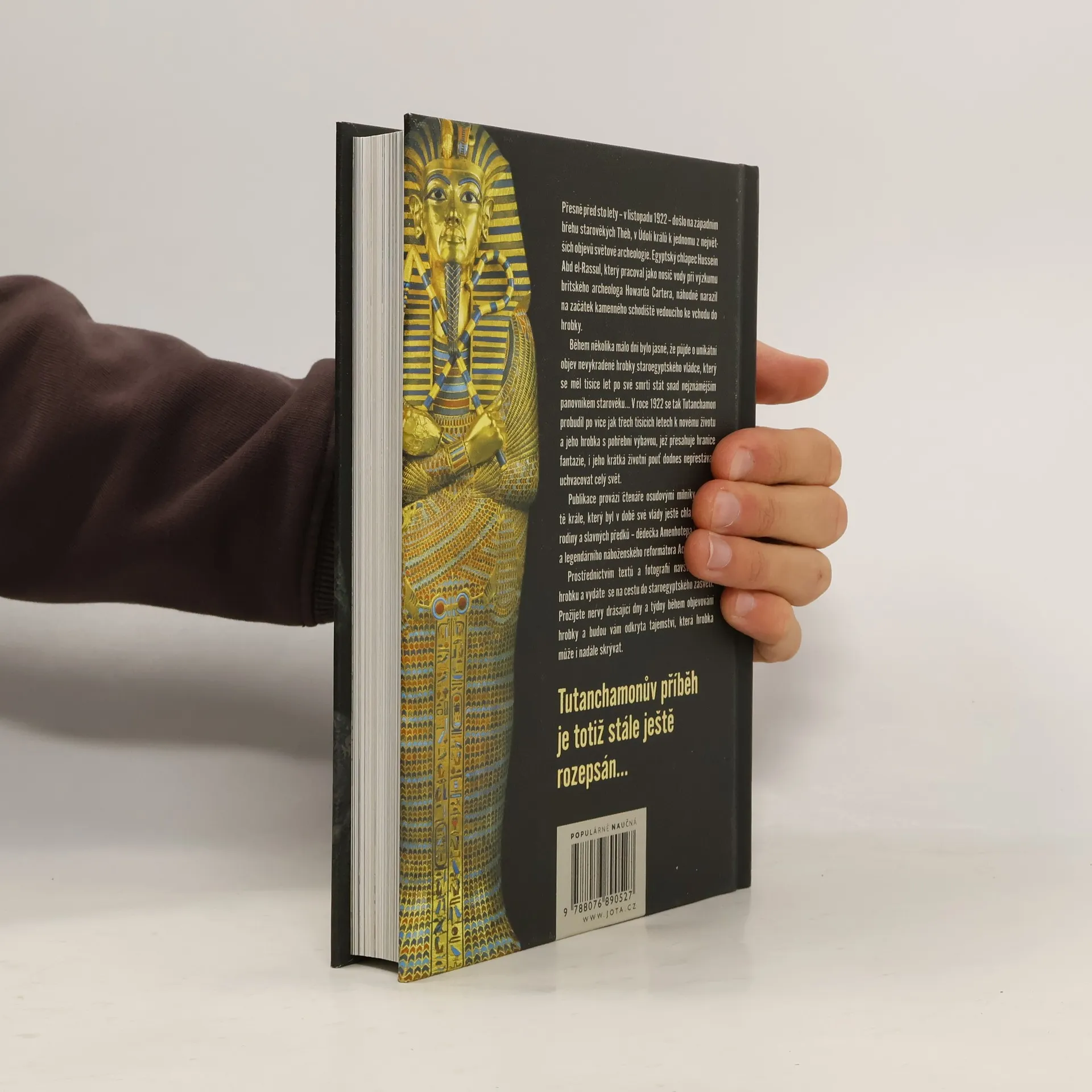Přesně před sto lety – v listopadu 1922 – došlo na západním břehu starověkých Théb, v Údolí králů k jednomu z největších objevů světové archeologie. Egyptský chlapec Hussein Abd el-Rassul, který pracoval jako nosič vody při výzkumu britského archeologa Howarda Cartera, náhodně narazil na začátek kamenného schodiště vedoucího ke vchodu do hrobky. Během několika málo dní bylo jasné, že půjde o unikátní objev nevykradené hrobky staroegyptského vládce, který se měl tisíce let po své smrti stát snad nejznámějším panovníkem starověku… V roce 1922 se tak Tutanchamon probudil po více jak třech tisících letech k novému životu a jeho hrobka s pohřební výbavou, jež přesahuje hranice fantazie, i jeho krátká životní pouť dodnes nepřestávají uchvacovat celý svět. Publikace provází čtenáře osudovými milníky v životě krále, který byl v době své vlády ještě chlapec, jeho rodiny a slavných předků – dědečka Amenhotepa III., otce a legendárního náboženského reformátora Achnatona. Prostřednictvím textů a fotografií navštívíte jeho hrobku a vydáte se na cestu do staroegyptského zásvětí. Prožijete nervy drásající dny a týdny během objevování hrobky a budou vám odkryta tajemství, která hrobka může i nadále skrývat. Tutanchamonův příběh je totiž stále ještě rozepsán…