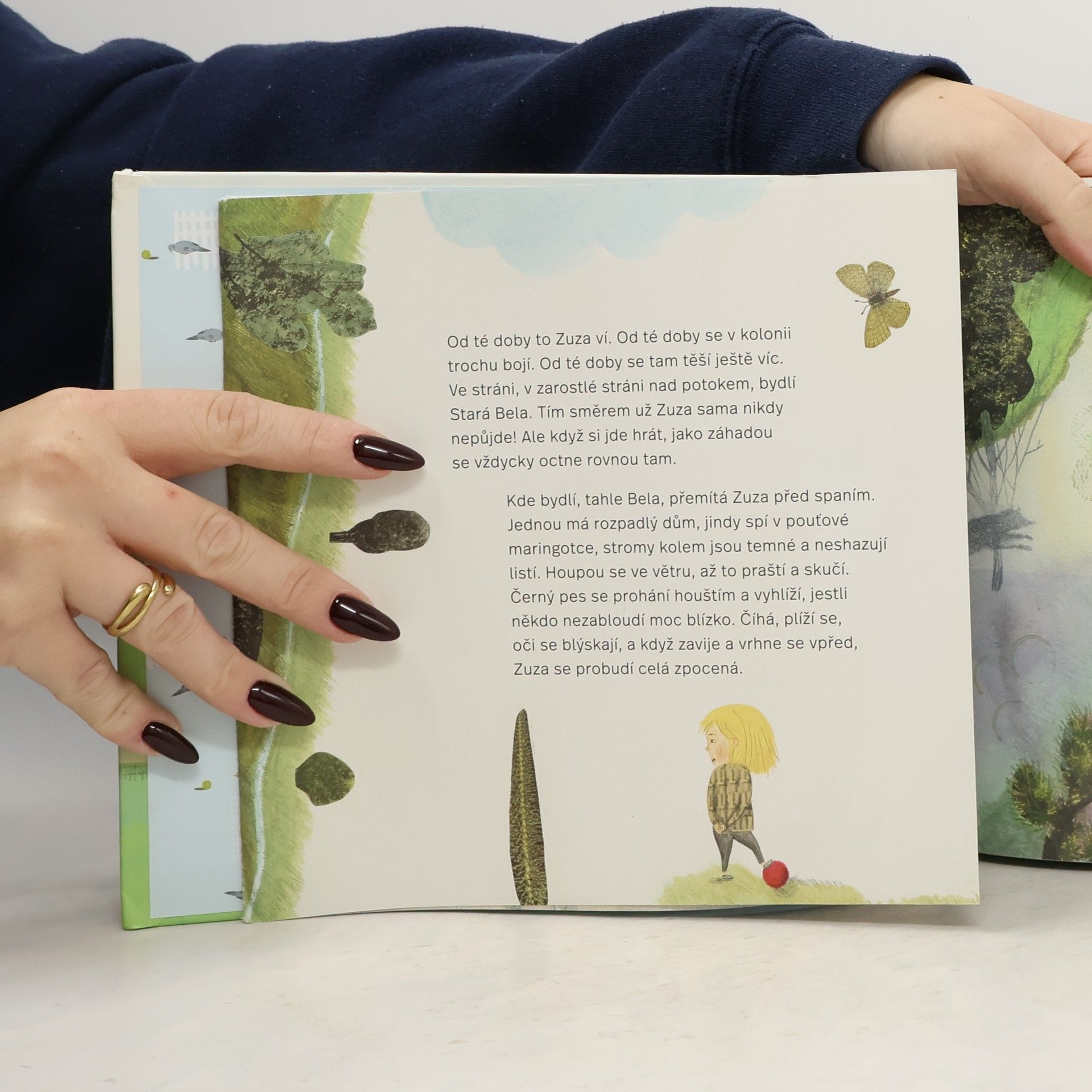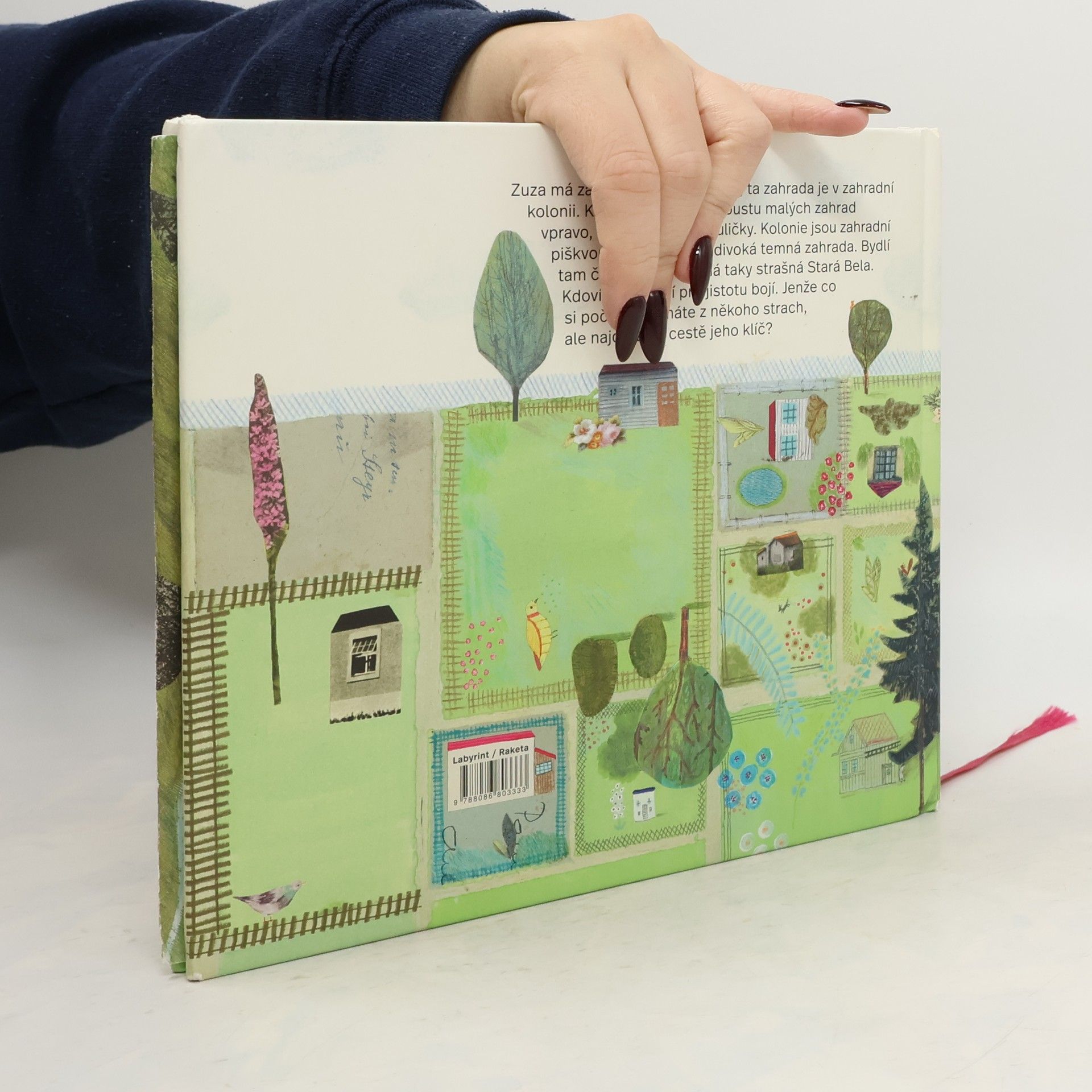 Zuza má zahradu. Ale ne u domu, ta zahrada je v zahradní kolonii. Kolonie znamená spoustu malých zahrad vpravo, vlevo a mezi nimi uličky. Kolonie jsou zahradní piškvorky. Za kolonií je divoká temná zahrada. Bydlí tam černý pes a možná taky strašná Stará Bela. Kdoví. Zuza se jí pro jistotu bojí. Jenže co si počít, když máte z někoho strach, ale najdete na cestě jeho klíč? Poetické vyprávění o překonávání strachu i předsudků a o půvabu odlišností. Úsporný text do barevné šíře rozehrávají fantastické ilustrace.