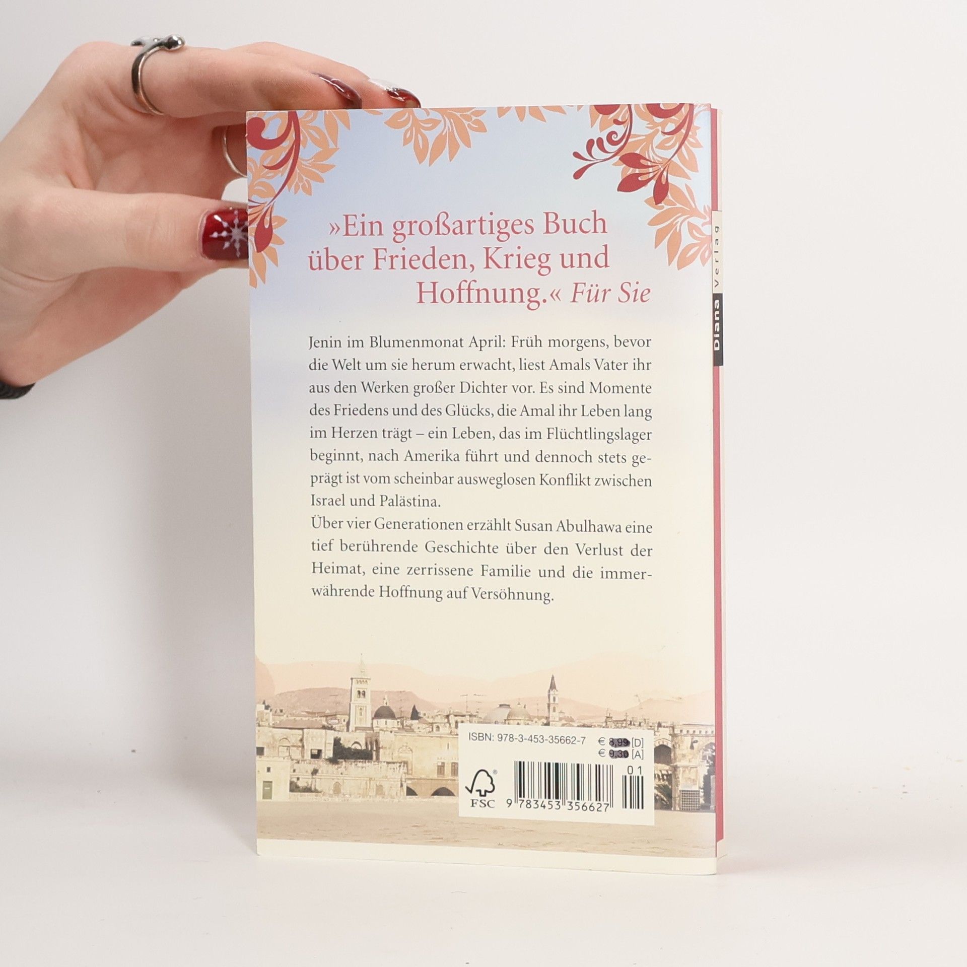 Vier Generationen, eine verlorene Heimat und die immerwährende Hoffnung auf Versöhnung Jenin im Blumenmonat April: Frühmorgens, bevor die Welt um sie herum erwacht, liest Amals Vater ihr aus den Werken großer Dichter vor. Es sind Momente des Friedens und des Glücks, die Amal ihr Leben lang im Herzen trägt — ein Leben, das im Flüchtlingslager beginnt, nach Amerika führt und dennoch stets geprägt ist vom scheinbar ausweglosen Konflikt zwischen Israel und Palästina. Über vier Generationen erzählt Susan Abulhawa eine tief berührende Geschichte über den Verlust der Heimat, eine zerrissene Familie und die immerwährende Hoffnung auf Versöhnung.