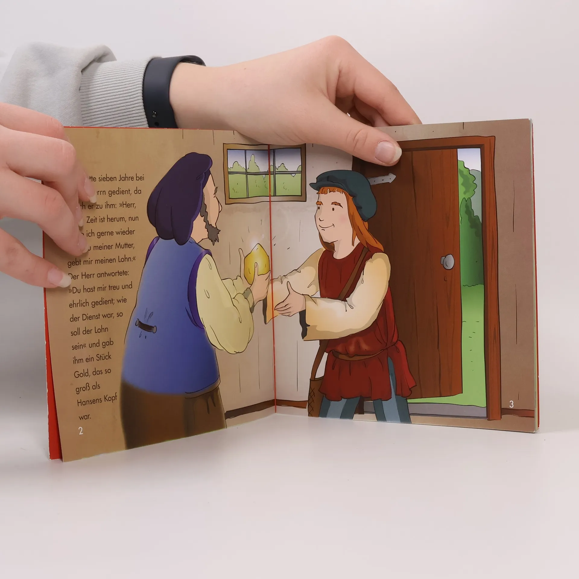 Das Märchen Hans im Glück verdient es, mit frischem Blick auf die Bilder der Künstlerin Katharina Naimer neu und aufmerksam gesehen zu werden. Hans erhält zu Beginn des Märchens den Goldklumpen als Lohn für sieben Jahre Arbeit, dann tauscht er den Goldklumpen gegen ein Pferd, das Pferd gegen eine Kuh, die Kuh gegen ein Schwein, das Schwein gegen eine Gans und die Gans schließlich gegen zwei Steine, die am Ende aus Versehen in den Brunnen fallen. Doch Hans hat Glück, auch ohne Hab und Gut. Ein Juwel um einen sorglosen Optimisten, der nichts braucht und doch so reich beschenkt ist.