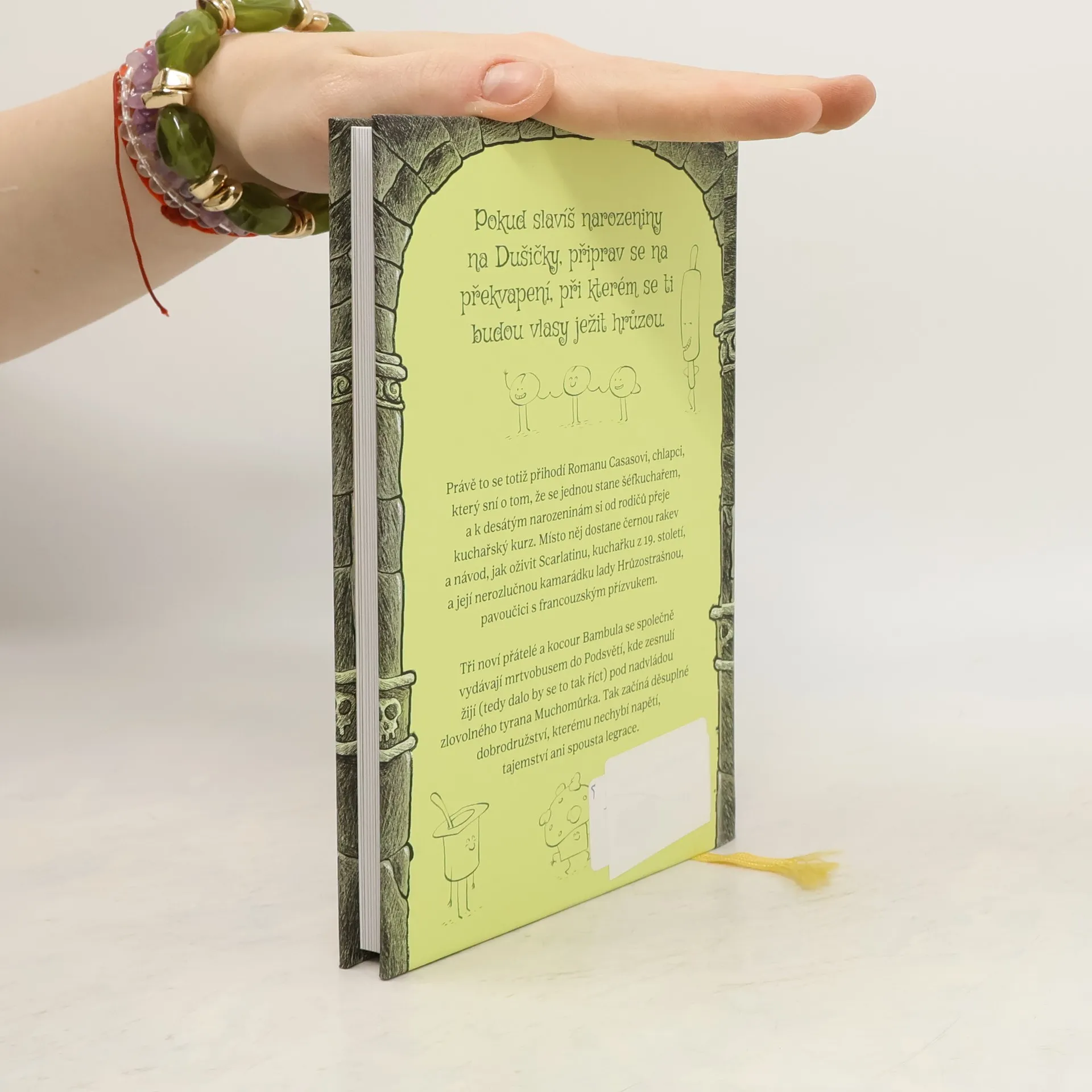Pokud slavíš narozeniny na Dušičky, připrav se na překvapení, při kterém se ti budou vlasy ježit hrůzou.Právě to se totiž stane Románu Casasovi, chlapci, který sní o tom, že se jednou stane šéfkuchařem, a k desátým narozeninám si od rodičů přeje kuchařský kurz. Místo něj dostane černou rakev a návod, jak oživit Scarlatinu, kuchařku z 19. století, a její nerozlučnou kamarádku lady Hrůzostrašnou, pavoučici s francouzským přízvukem.Tři noví přátelé a kocour Bambula se společně vydávají mrtvobusem do Podsvětí, kde zesnulí žijí (tedy, dalo by se to tak říct) pod nadvládnou zlovolného tyrana Muchomůrka. Tak začíná děsuplné dobrodružství, kterému nechybí napětí, tajemství ani spousta legrace.