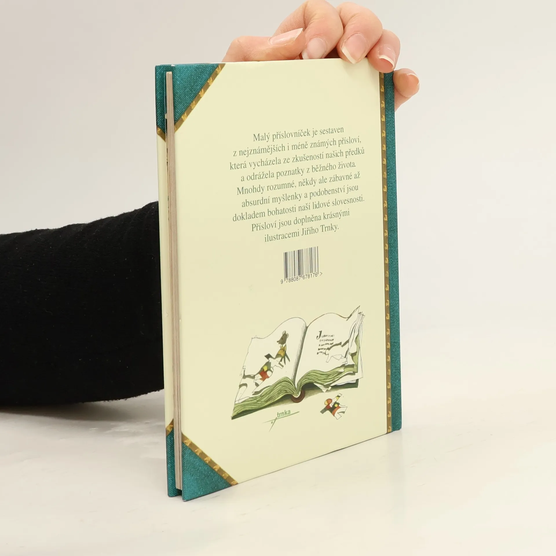 Malý příslovníček je sestaven z nejznámějších, i méně známých českých přísloví, která vycházela ze zkušeností našich předků a odrážela poznatky z běžného života. Mnohdy rozumné, někdy ale zábavné až absurdní výtvory jsou dokladem bohatosti naší lidové slovesnosti. Přísloví jsou doplněna, krásnými ilustracemi Jiřího Trnky.