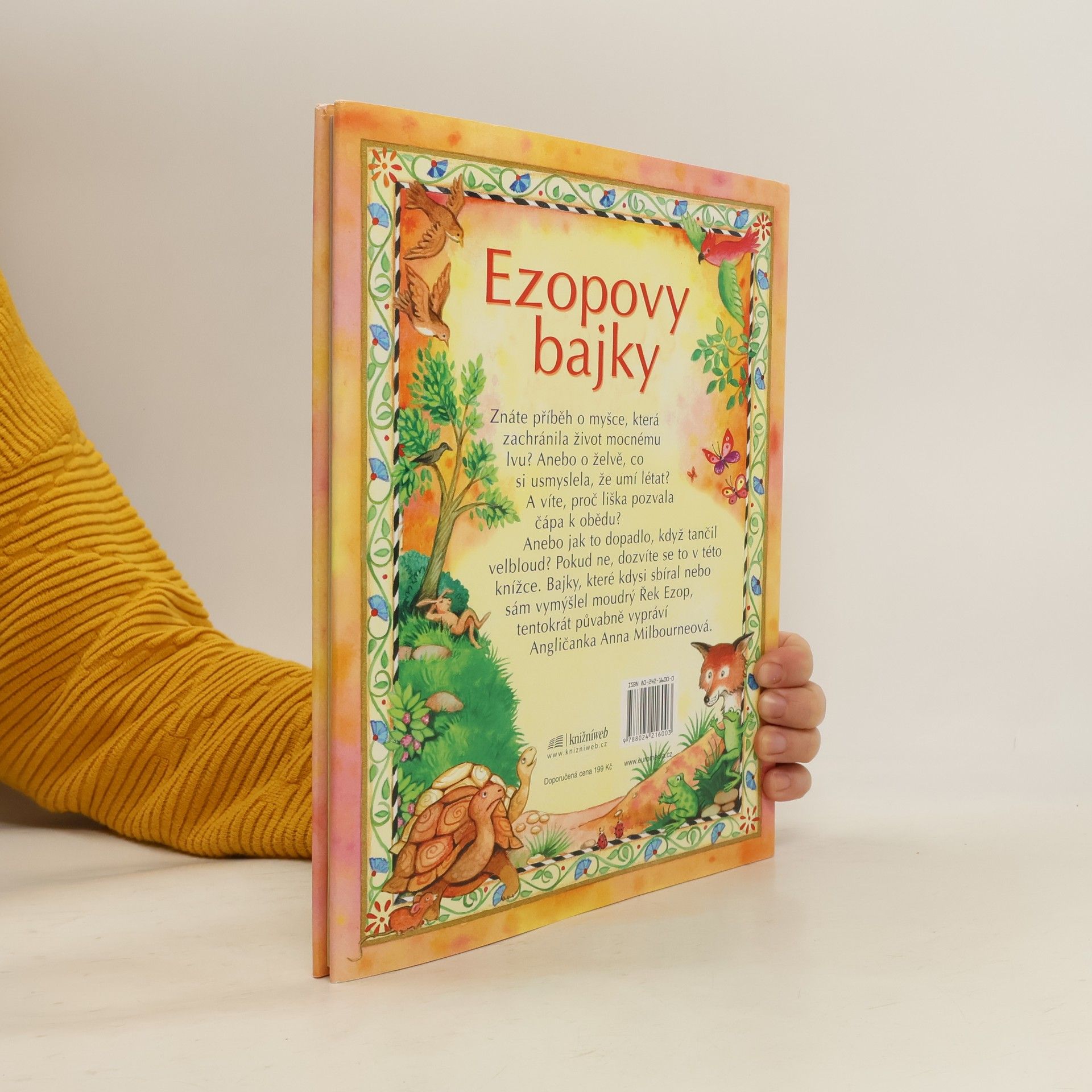 EZOPOVY BAJKY Nejslavnější autor bajek Ezop žil v Řecku před více než dvěma tisíci lety. K příběhům, v nichž zvířata či věci jednají a myslí jako lidé, se v průběhu staletí obrátilo mnoho autorů. K nejznámějším patří Francouz La Fontaine, z našich spisovatelů Karel Čapek. V knížce, kterou jste právě otevřeli, vypráví Ezopovy bajky anglická spisovatelka Anna Milbourneová. Umí to svižně a s humorem; některé příběhy dokonce zasadila do dnešní doby - o to budou čtenáři bližší... Přeložila Melita Denková. Pro děti od 6 let. Váz., 96 stran, 21,5 x 27,5 cm, barevná publikace