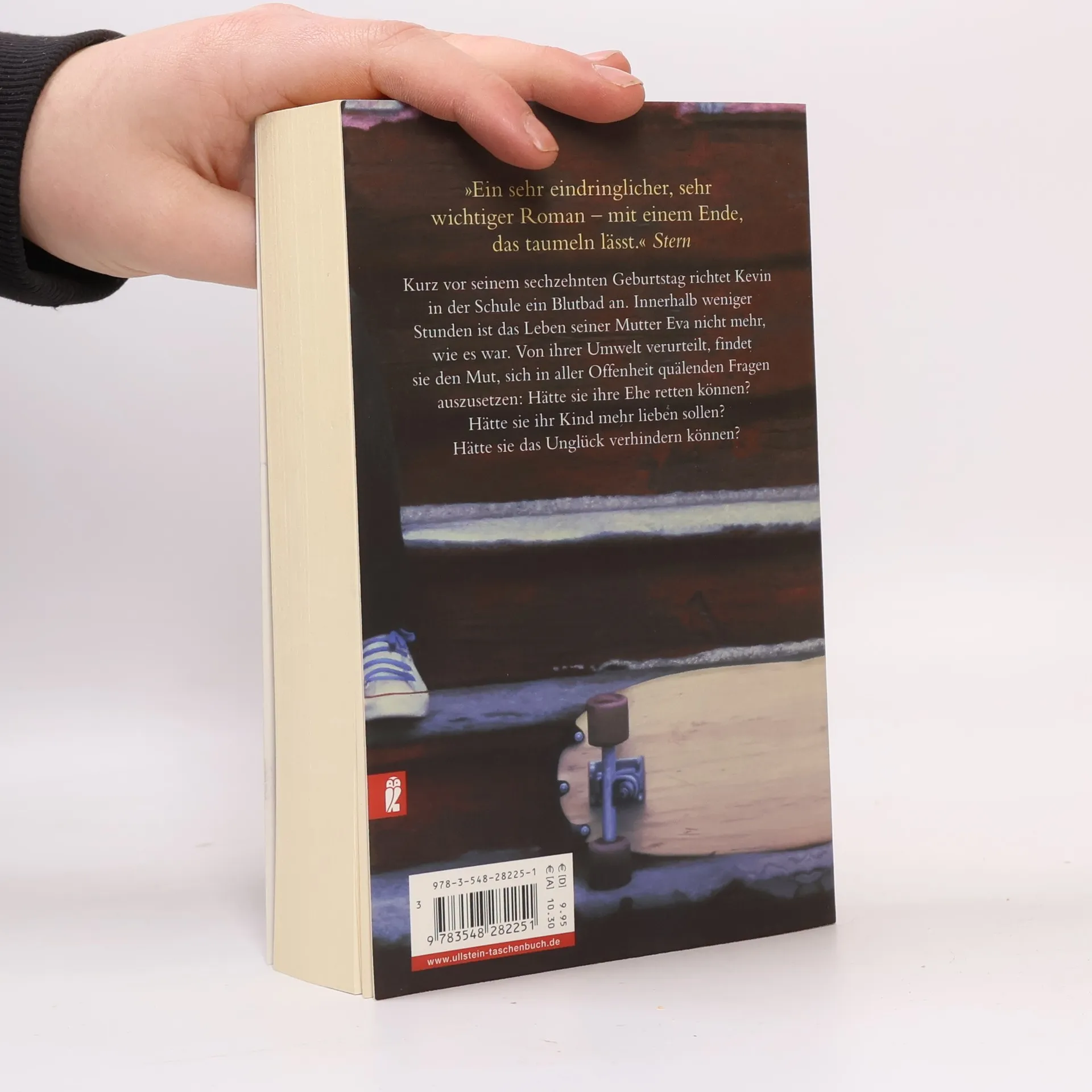Kurz vor seinem sechzehnten Geburtstag richtet Kevin in der Schule ein Blutbad an. Innerhalb weniger Stunden ist das Leben seiner Mutter Eva nicht mehr, wie es war. Von allen verurteilt und ab sofort auf sich selbst gestellt, findet sie den Mut, sich in aller Offenheit quälenden Fragen auszusetzen: Hätte sie ihre Ehe retten können? Hätte sie ihr Kind mehr lieben sollen? Hätte sie das Unglück verhindern können?
