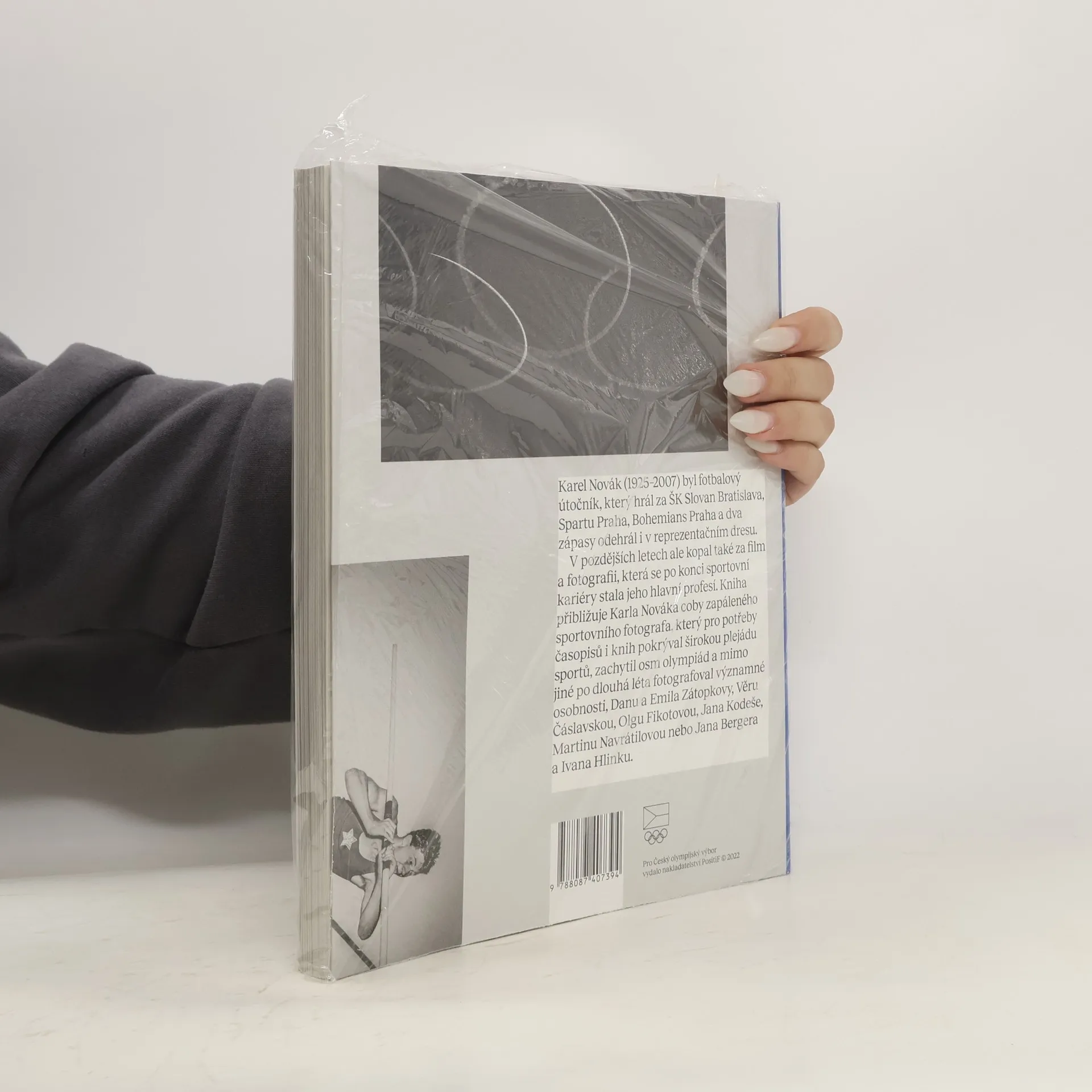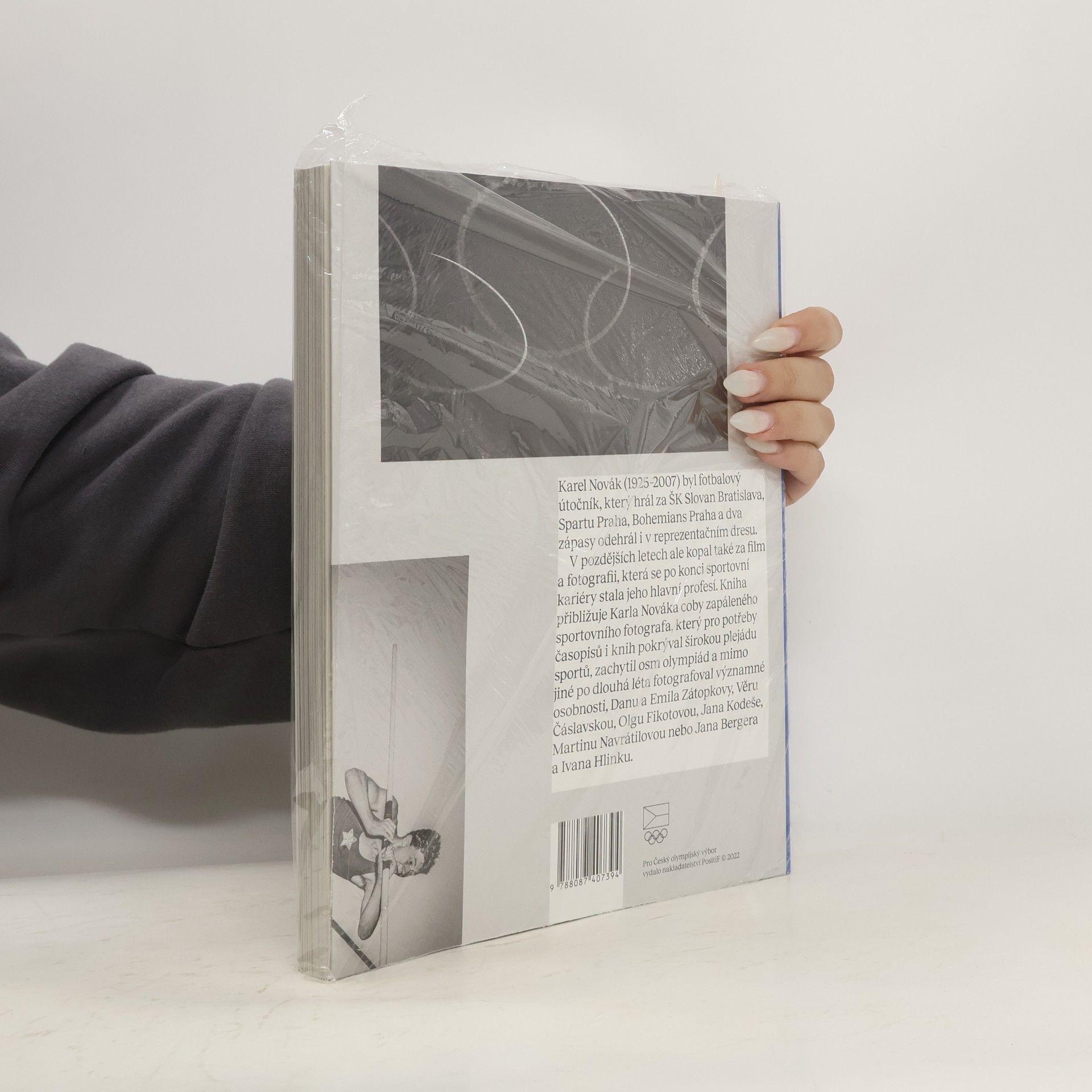 Karel Novák (1925–2007) byl fotbalový útočník, který hrál za ŠK Slovan Bratislava, Spartu Praha, Bohemians Praha a dva zápasy odehrál i v reprezentačním dresu. V pozdějších letech ale kopal také za film a fotografii, která se po konci sportovní kariéry stala jeho hlavní profesí. Kniha přibližuje Karla Nováka coby zapáleného sportovního fotografa, který pro potřeby časopisů i knih pokrýval širokou plejádu sportů, zachytil osm olympiád a mimo jiné po dlouhá léta fotografoval významné osobnosti, například Danu a Emila Zátopkovy, Věru Čáslavskou, Olgu Fikotovou, Jana Kodeše, Martinu Navrátilovou nebo Jana Bergera a Ivana Hlinku. Kniha by nevznikla bez podpory České olympijské akademie, která disponuje rozsáhlou sbírkou snímků fotografa Karla Nováka. Speciální poděkování patří dceři Karla Nováka paní Dagmar, která poskytla do publikace jak cenné zápisky z cest Karla Nováka za sportem z 50. a 60. let 20. století, tak především řadu osobních vzpomínek na tátu, jemuž roky pomáhala při fotografování a sestavování archivu z více jak dvou set tisíc fotografií. Kniha vychází ve spolupráci s Českým olympijským výborem.