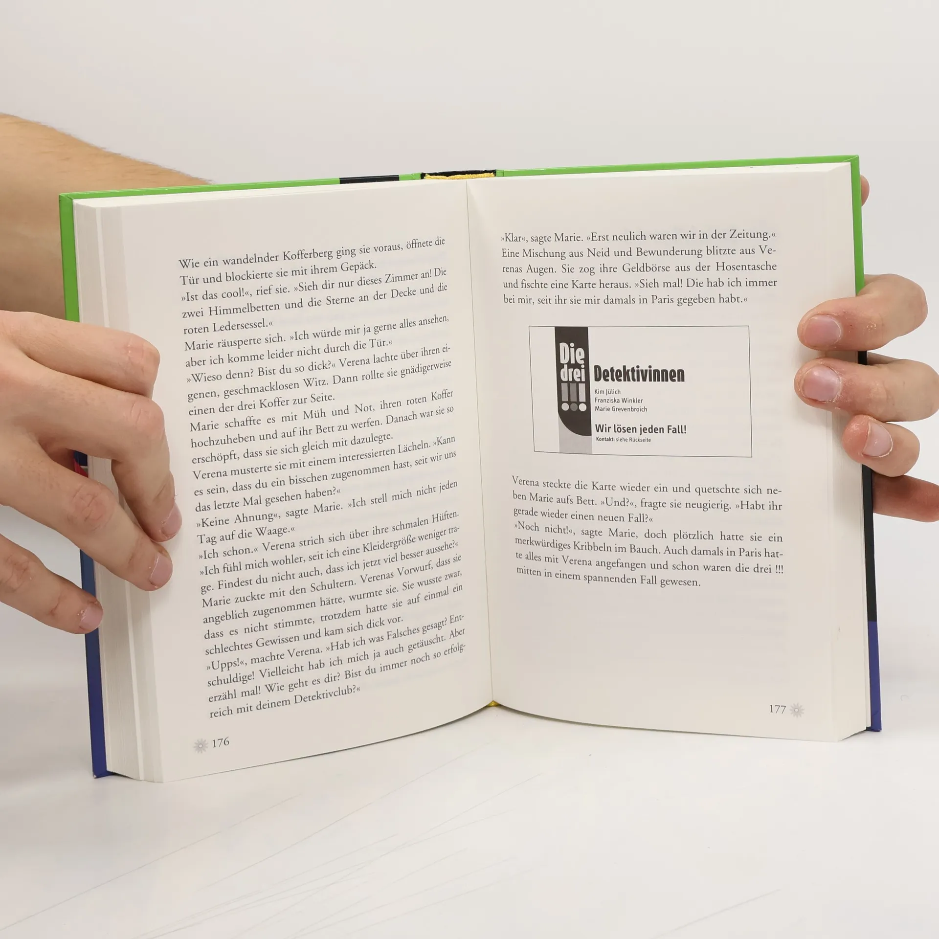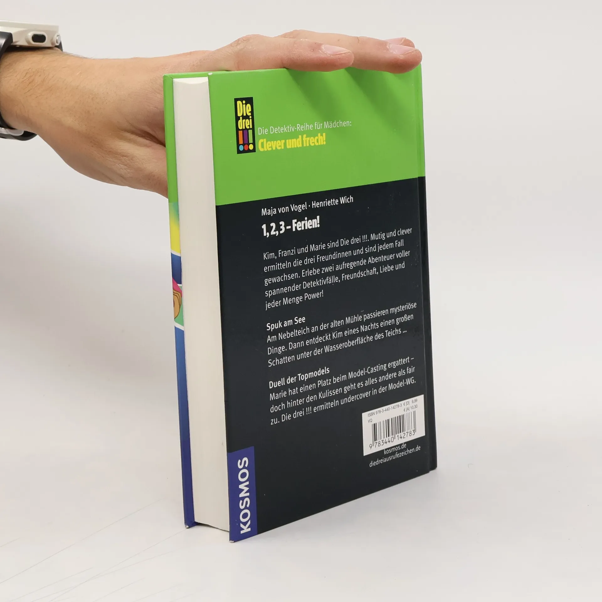 Kim, Franzi und Marie sind Die drei !!!. Mutig und clever ermitteln die drei Freundinnen und sind jedem Fall gewachsen. Erlebe zwei aufregende Abenteuer voller spannender Detektivfälle, Freundschaft, Liebe und jeder Menge Power! Spuk am See: Am Nebelteich an der alten Mühle passieren mysteriöse Dinge. Dann entdeckt Kim eines Nachts einen großen Schatten unter der Wasseroberfläche des Teichs … Duell der Topmodels: Marie hat einen Platz beim Model-Casting ergattert – doch hinter den Kulissen geht es alles andere als fair zu. Die drei !!! ermitteln undercover in der Model-WG.