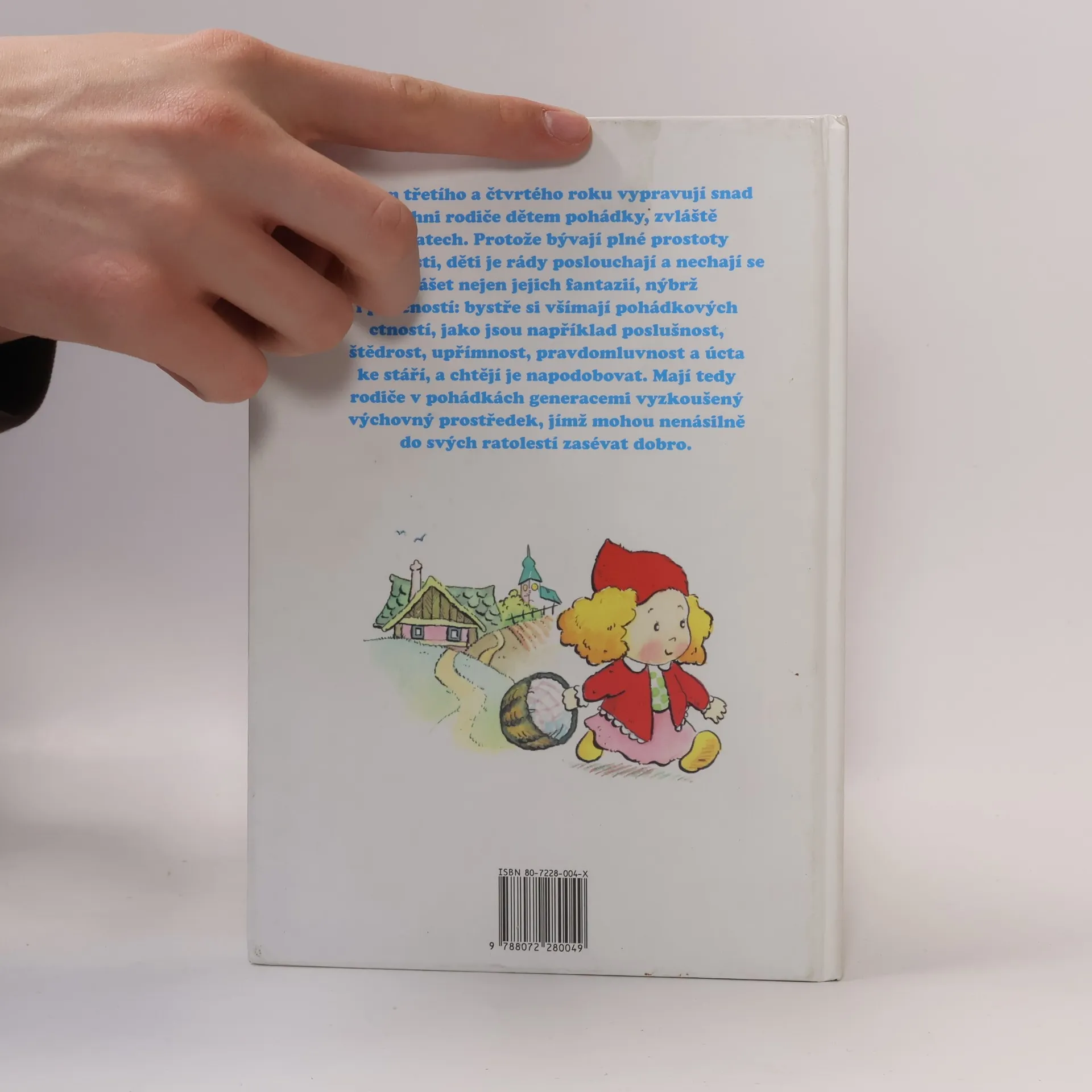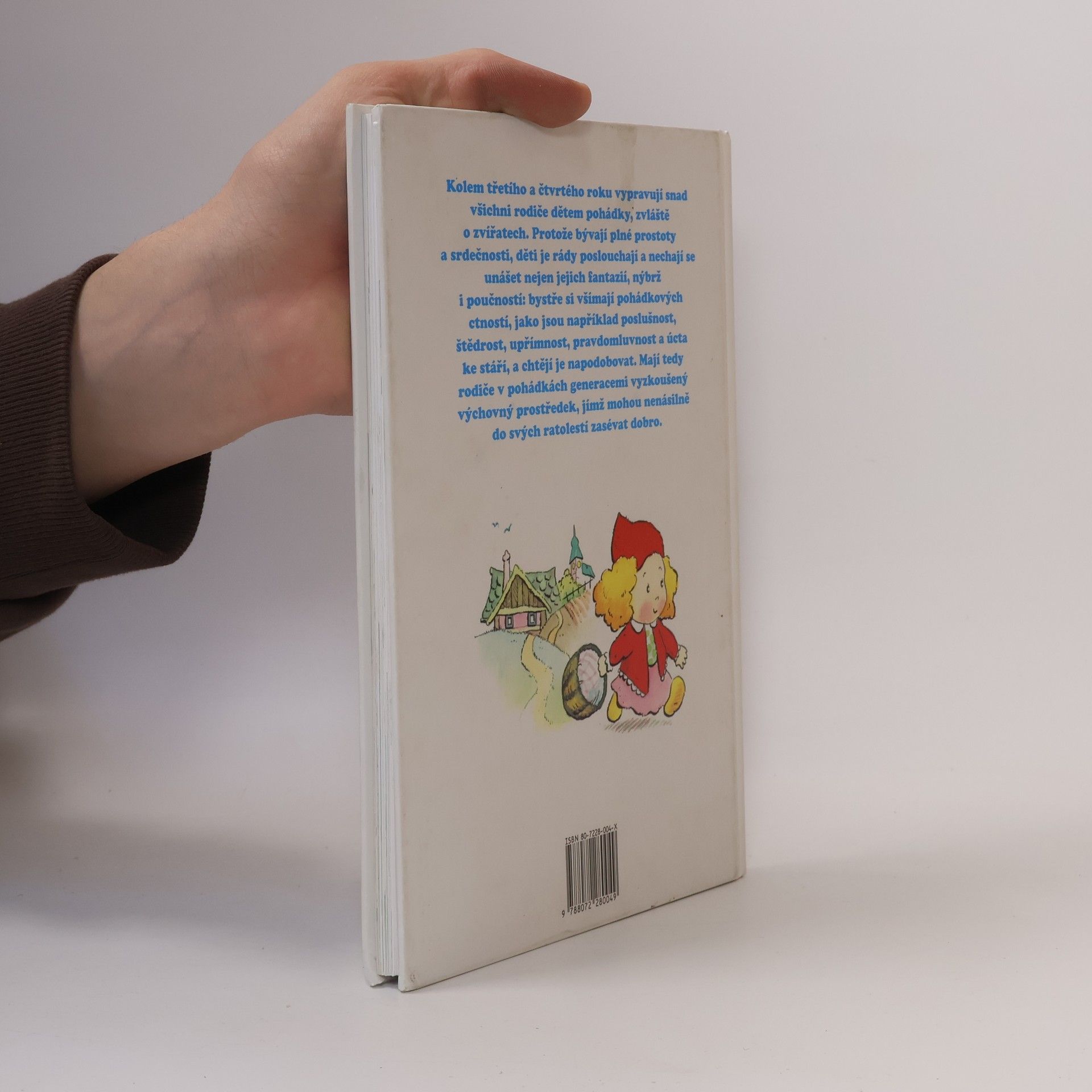 Kolem třetího a čtvrtého roku vypravují snad všichni rodiče dětem pohádky, zvláště o zvířatech. Protože bývají plné prostoty a srdečnosti, ději je rády poslouchají a nechají se unášet nejen jejich fantazií, nýbrž i poučností: bystře si všímají pohádkových ctností, jako jsou například poslušnost, štědrost, upřímnost, pravdomluvnost a úcta ke stáří, a chtějí je napodobovat. Mají tedy rodiče v pohádkách generacemi vyzkušený výchovný prostředek, jímž mohou nenásilně do svých ratolestí zasévat dobro.