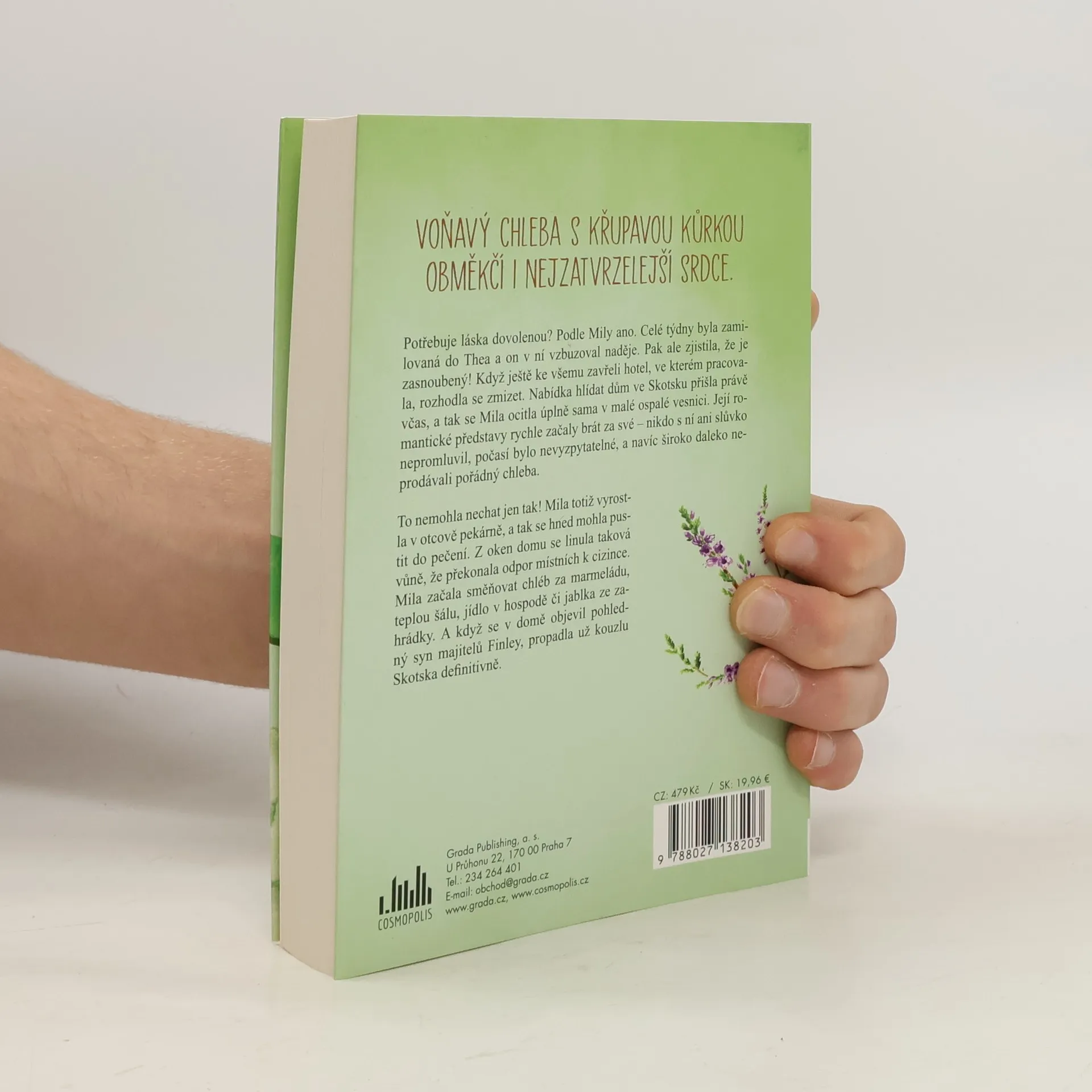 Potřebuje láska dovolenou? Podle Mily ano. Celé týdny byla zamilovaná do Thea a on v ní vzbuzoval naděje. Pak ale zjistila, že je zasnoubený! Když ještě ke všemu zavřeli hotel, ve kterém pracovala, rozhodla se zmizet. Nabídka hlídat dům ve Skotsku přišla právě včas, a tak se Mila ocitla úplně sama v malé ospalé vesnici. Její romantické představy rychle začaly brát za své – nikdo s ní ani slůvko nepromluvil, počasí bylo nevyzpytatelné, a navíc široko daleko neprodávali pořádný chleba.To nemohla nechat jen tak! Mila totiž vyrostla v otcově pekárně, a tak se hned mohla pustit do pečení. Z oken domu se linula taková vůně, že překonala odpor místních k cizince. Mila začala směňovat chléb za marmeládu, teplou šálu, jídlo v hospodě či jablka ze zahrádky. A když se v domě objevil pohledný syn majitelů Finley, propadla už kouzlu Skotska definitivně.