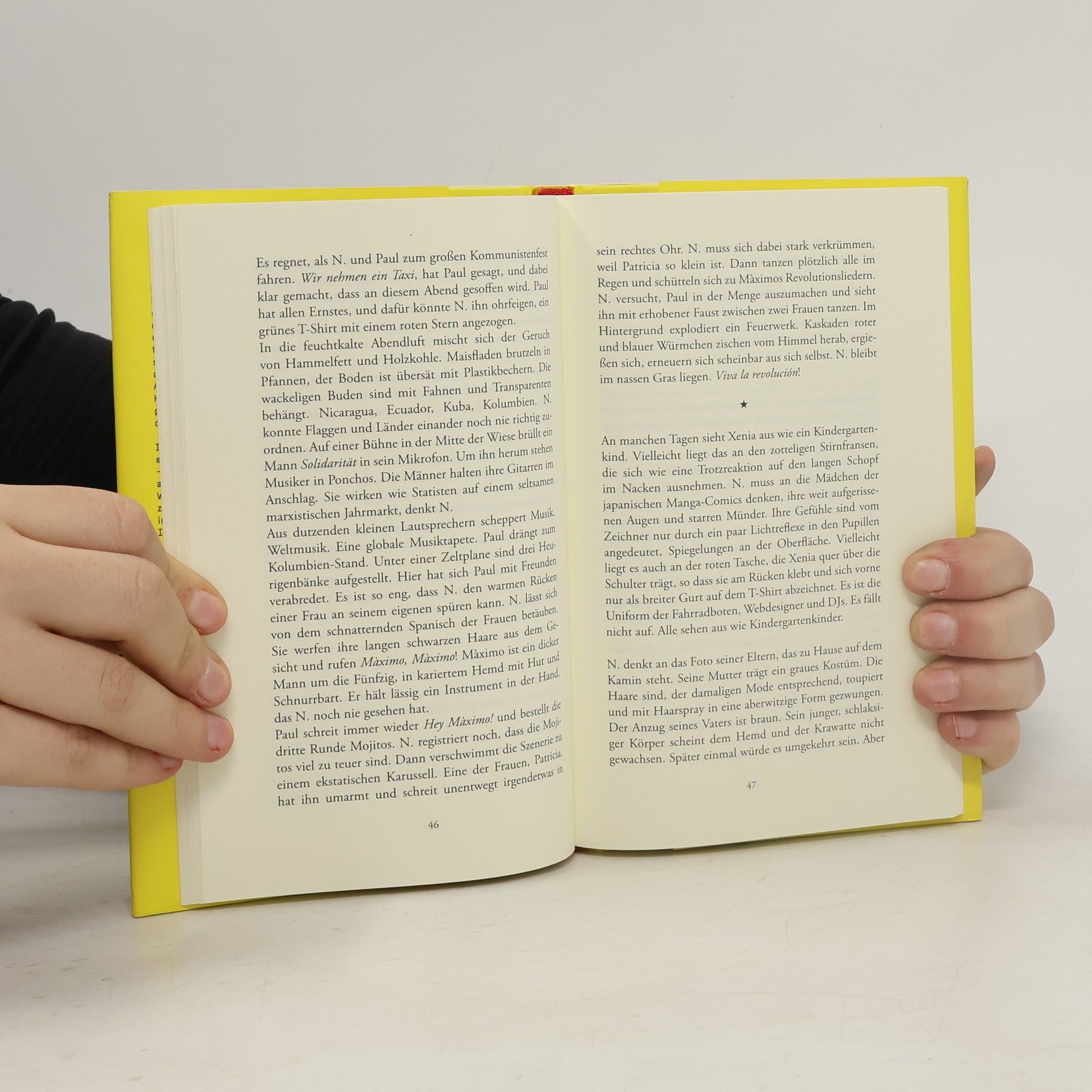 Ein Winter in der Stadt. – N. ist einer, der sich treiben lässt. Weil es sich so ergeben hat. Zwischen fadenscheinigen Parties und dem nächsten Espresso bleibt manchmal der Geruch einer Frau. Sein Freund Paul ist Künstler und träumt von Revolution, den größten Freiheitskampf führt er gegen seine Kontaktlinsen. Mitten in N.'s Großstadttrance platzt Xenia; sich ihrer Unberechenbarkeit auszuliefern, scheint ihm das letzte große Abenteuer. Außer dem Üblichen passiert nicht viel, nur 'über den Häusern ist ein Hubschrauber zu hören. Das Knattern pflanzt sich als Druckwelle eines Unglücks fort, das aus der Ferne vage bleibt.'