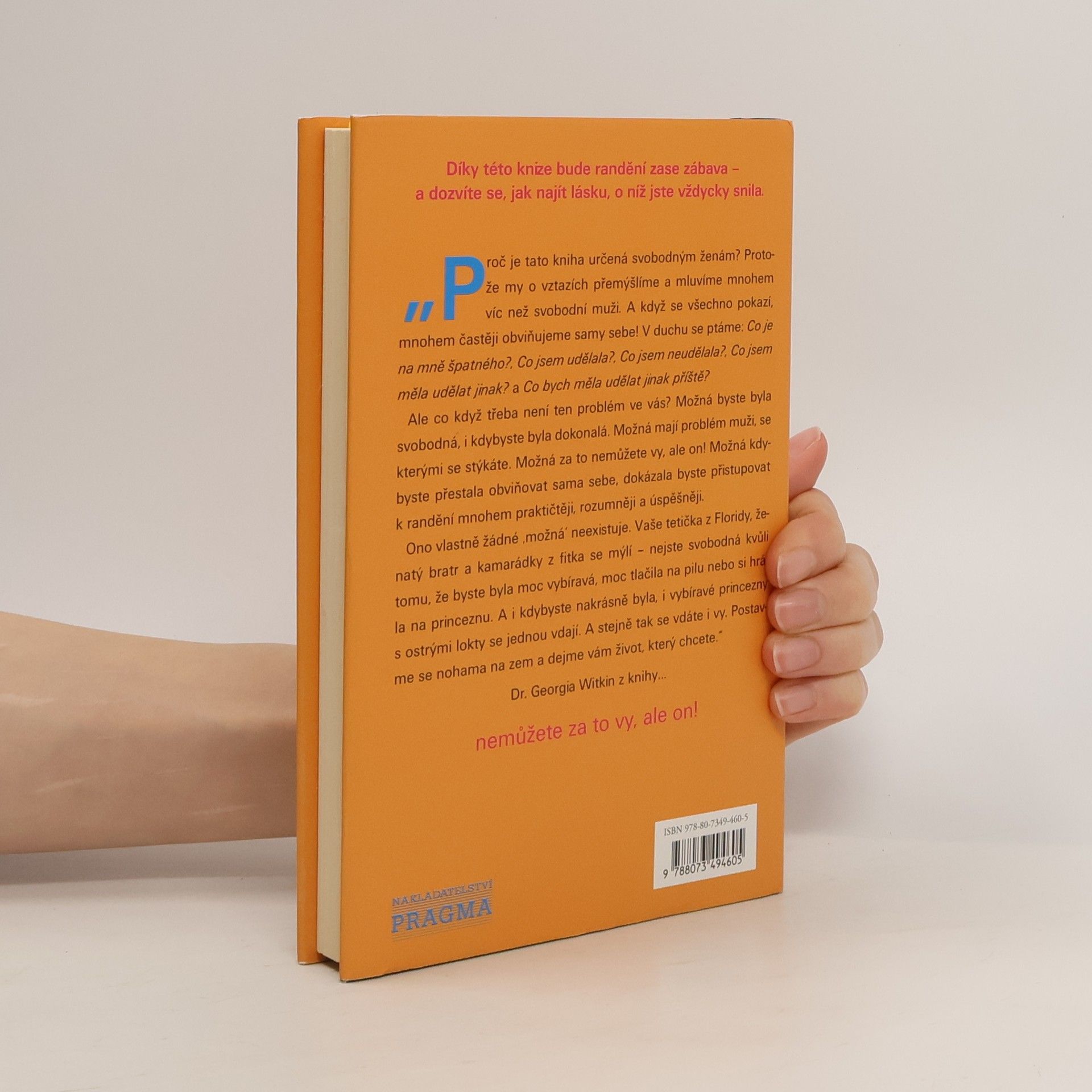 Proč je tato kniha určená svobodným ženám? Protože my o vztazích přemýšlíme a mluvíme mnohem víc než svobodní muži. A když se všechno pokazí, mnohem častěji obviňujeme samy sebe! V duchu se ptáme: „Co je na mně špatného?“, „Co jsem udělala?“, „Co jsem neudělala?“, „Co jsem měla udělat jinak?“ a „Co bych měla udělat jinak příště?“ Ale co když třeba není ten problém ve vás? Možná byste byla svobodná, i kdybyste byla dokonalá. Možná mají problém muži, se kterými se stýkáte. Možná za to nemůžete vy, ale on! Možná kdybyste přestala obviňovat sama sebe, dokázala byste přistupovat k randění mnohem praktičtěji, rozumněji a úspěšněji. Ono vlastně žádné „možná“ neexistuje. Vaše tetička z Floridy, ženatý bratr a kamarádky z fitka se mýlí – nejste svobodná kvůli tomu, že byste byla moc vybíravá, moc tlačila na pilu nebo si hrála na princeznu. A i kdybyste nakrásně byla, i vybíravé princezny s ostrými lokty se jednou vdají. A stejně tak se vdáte i vy. Postavme se nohama na zem a dejme vám život, který chcete.