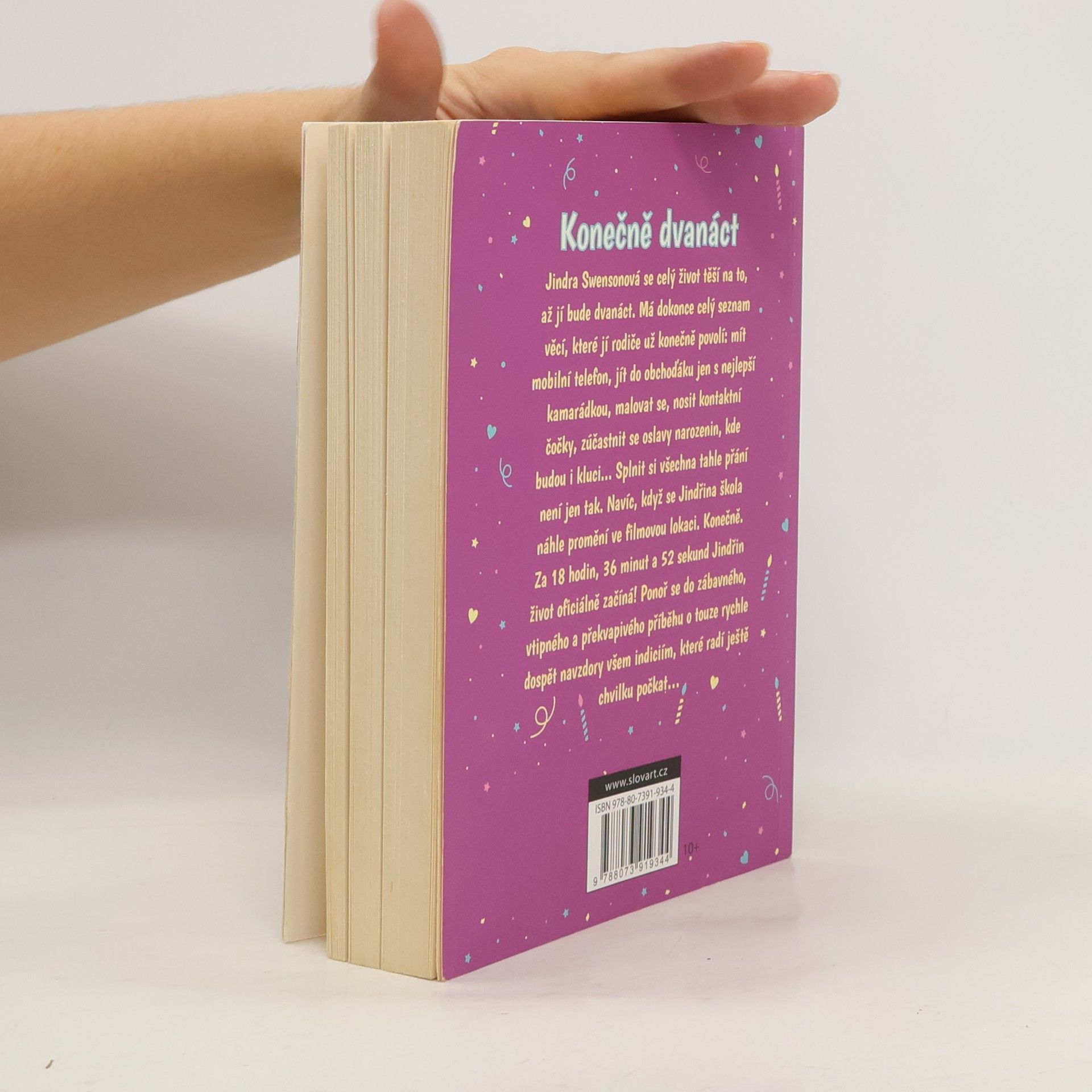 Jindra Swensonová čeká celý život na to, až jí bude dvanáct. Má dokonce celý seznam věcí, které se těchto narozenin týkají – mít mobilní telefon, jít do obchoďáku bez rodičů (jen s nejlepší kamarádkou), malovat se, nosit kontaktní čočky, jít na smíšenou oslavu narozenin... Kdykoliv Jindra po něčem touží, odbydou ji rodiče slovy, „Až ti bude dvanáct, až ti bude dvanáct, až ti bude dvanáct…". Konečně. Za 18 hodin, 36 minut a 52 sekund je to tady. Jindřin život oficiálně začíná! Ponoř se do zábavného, vtipného a překvapivého příběhu o touze rychle dospět navzdory všem indiciím, které radí ještě chvilku počkat…