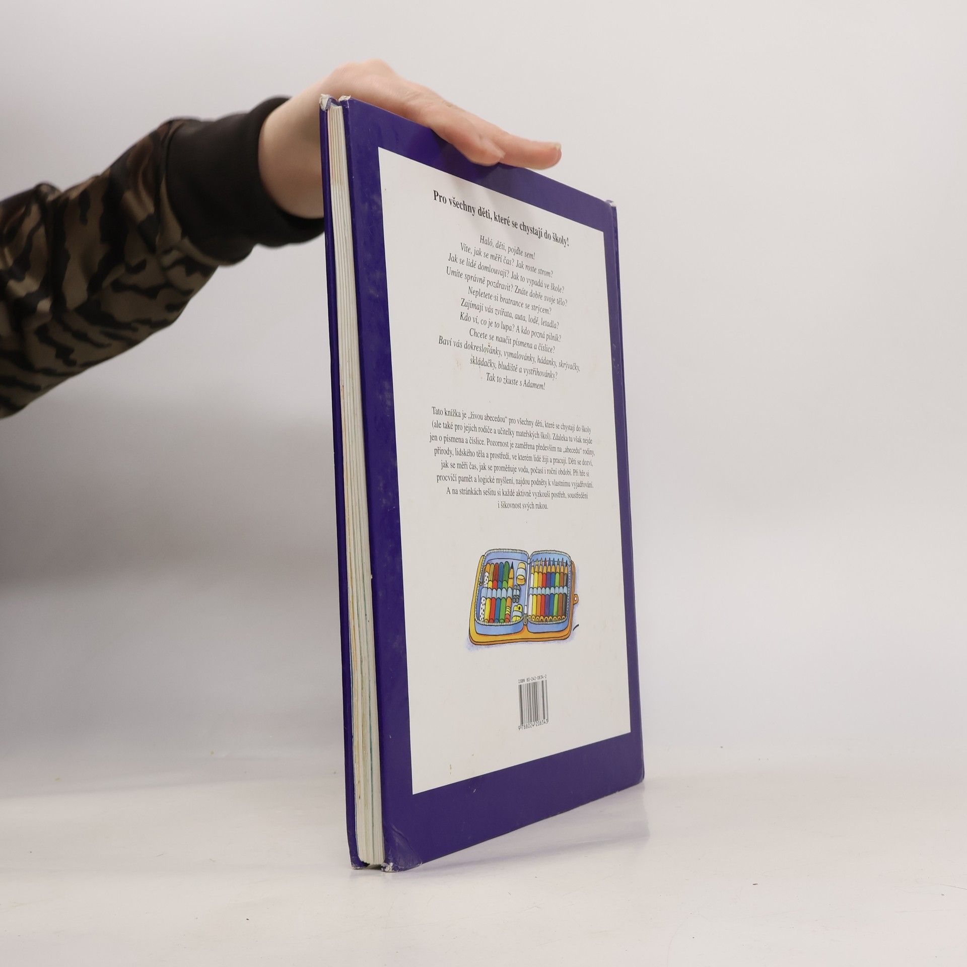 Tato knížka je "živou abecedou" pro všechny děti, které se chystají do školy (ale také pro jejich rodiče a učitelky mateřských škol). Zdaleka tu však nejde jen o písmena a číslice. Pozornost je zaměřena především na "abecedu" rodiny, přírody, lidského těla a prostředí, ve kterém lidé žijí a pracují. Děti se dozví, jak se měří čas, jak se proměňuje voda, počasí i roční období. Při hře si procvičí pamět a logické myšlení, najdou podněty k vlastnímu vyjadřování. A na stránkách sešitu si každé aktivně vyzkouší postřeh, soustředění i šikovnost svých rukou.