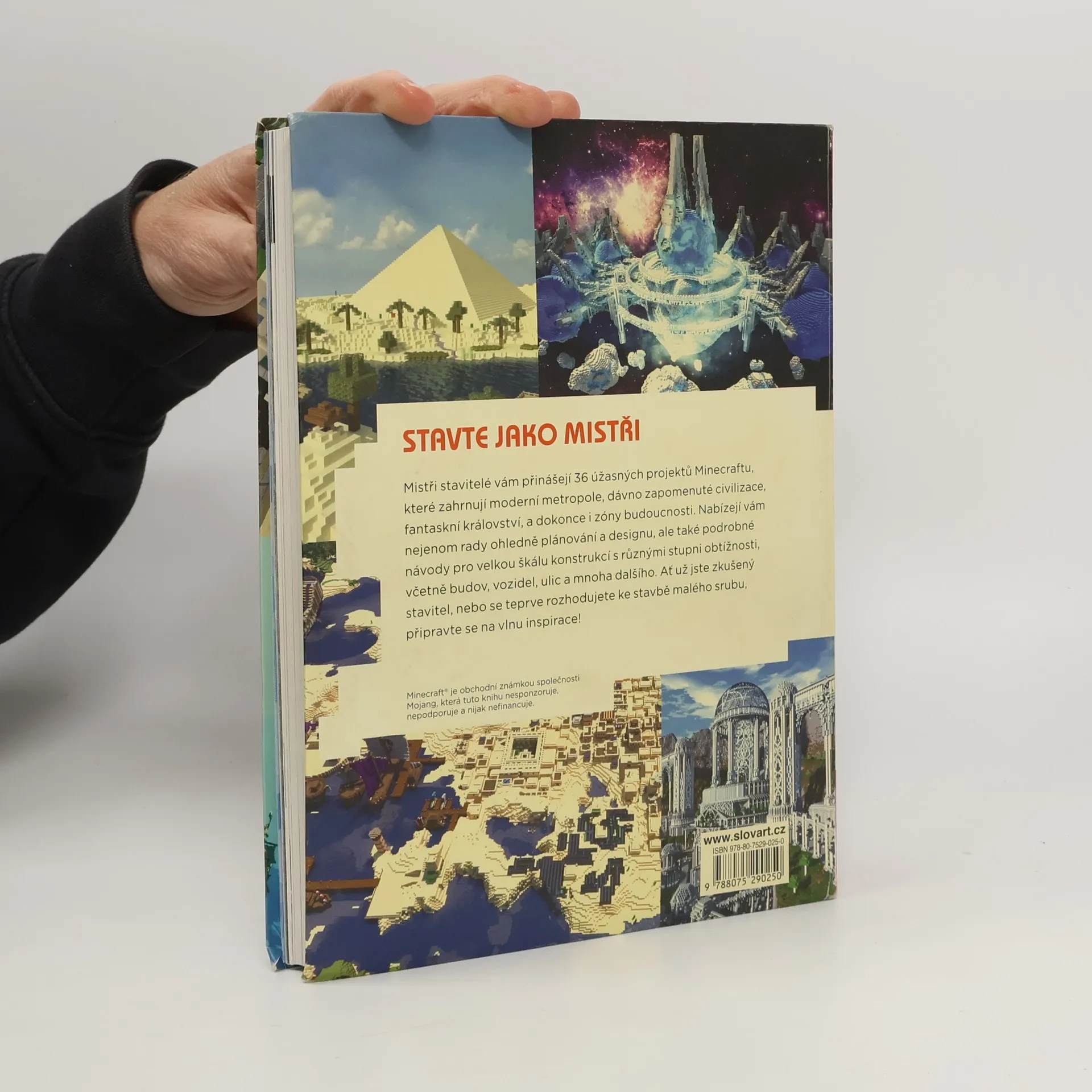 Mistři stavitelé vám přinášejí 36 úžasných projektů Minecraftu, které zahrnují moderní metropole, dávno zapomenuté civilizace, fantaskní království, a dokonce i zóny budoucnosti. Nabízejí vám nejenom rady ohledně plánování a designu, ale také podrobné návody pro velkou škálu konstrukcí s různými stupni obtížnosti, včetně budov, vozidel, ulic a mnoha dalšího. Ať už jste zkušený stavitel, nebo se teprve rozhodujete ke stavbě malého srubu, připravte se na vlnu inspirace!