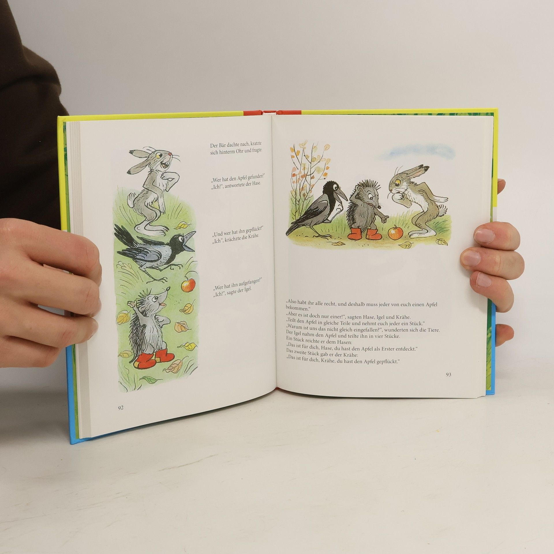 Ein Bestseller! Kleine Tiergeschichten mit wunderbar farbenprächtigen Illustrationen des Autors, der mit seiner rechten Hand schreibt und mit der linken zeichnet. „So weiß jede, was die andere gerade macht. Denn meine Gestalten haben ihren ganz eigenen Charakter und ich muss wissen, wie es ihnen ergeht bei so vielen Abenteuern.“ Ein Bilderbuch, welches seit über fünfzig Jahre kleine und große Leser begeistert.