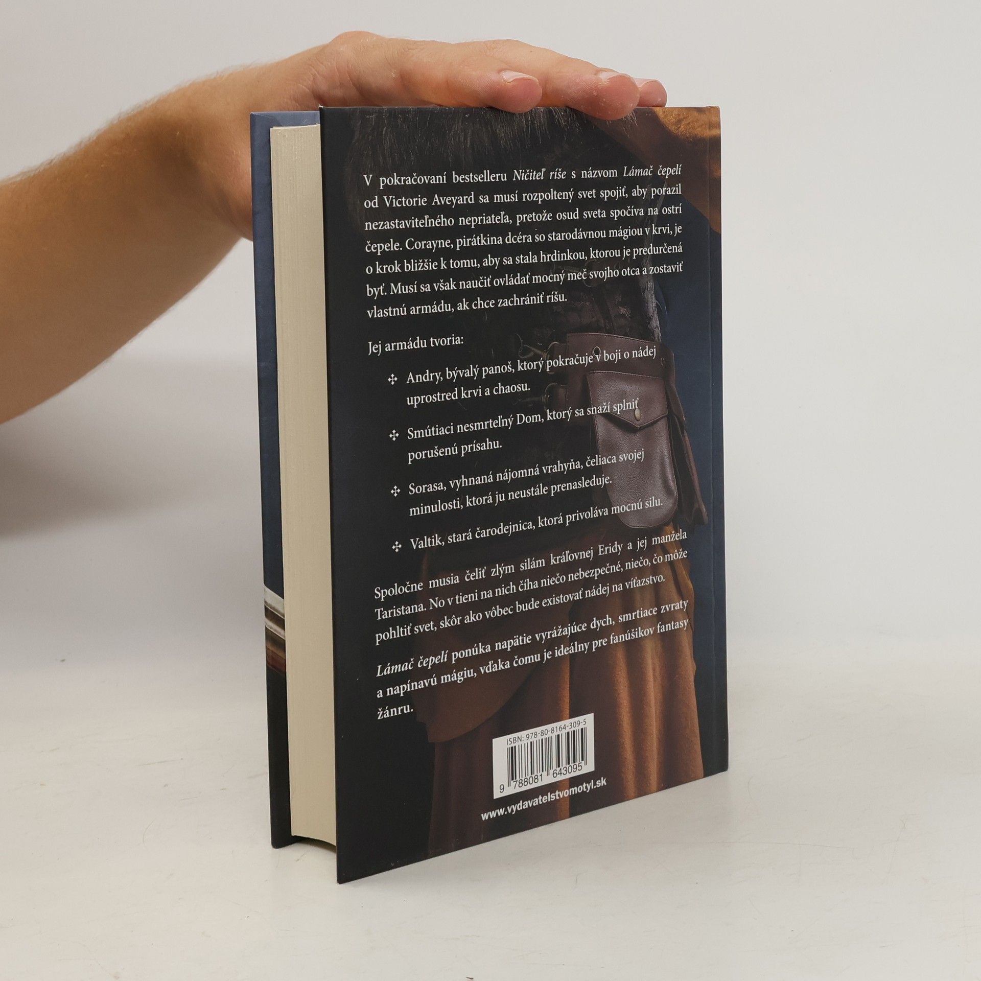 V pokračovaní bestselleru Ničiteľ ríše s názvom Lámač čepelí od Victorie Aveyard musí rozpoltený svet spojiť svoje sily, aby porazil nezastaviteľného nepriateľa, pretože osud sveta spočíva na ostrí čepele. Corayne, pirátkina dcéra so starodávnou mágiou v krvi, je o krok bližšie k tomu, aby sa stala hrdinkou, ktorou je predurčená byť. Musí sa však naučiť ovládať mocný meč svojho otca a zostaviť vlastnú armádu, ak chce zachrániť ríšu.Jej armádu tvoria:Andry, bývalý panoš, ktorý pokračuje v boji o nádej uprostred krvi a chaosu.Smútiaci nesmrteľný Dom, ktorý sa snaží splniť porušenú prísahu.Sorasa, vyhnaná nájomná vrahyňa, čeliaca svojej minulosti, ktorá ju neustále prenasleduje.Valtik, stará čarodejnica, ktorá privoláva mocnú silu.Spoločne musia čeliť zlým silám kráľovnej Eridy a jej manžela Taristana. No v tieni na nich číha niečo nebezpečné, niečo, čo môže pohltiť svet, skôr ako vôbec bude existovať nádej na víťazstvo.Lámač čepelí ponúka napätie vyrážajúce dych, smrtiace zvraty a napínavú mágiu, vďaka čomu je ideálny pre fanúšikov fantasy žánru.