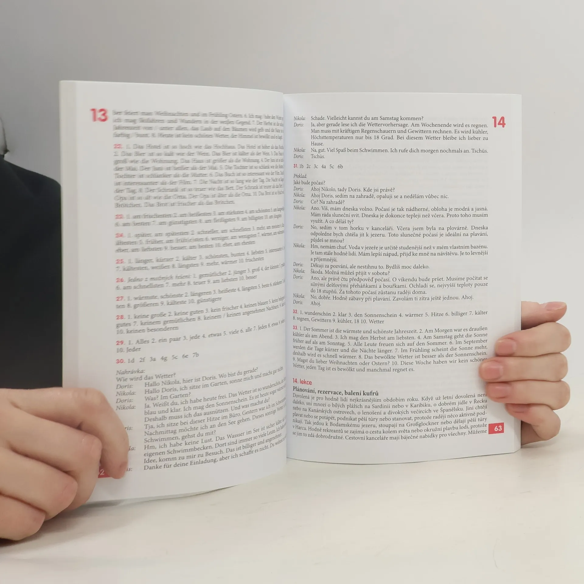 Zcela nová učebnice němčiny přináší slovní zásobu v rozsahu asi 2500 slov, veškerou základní mluvnici, užitečnou frazeologii a praktické konverzační obraty. Témata jednotlivých lekcí reflektují současný každodenní život se zaměřením na německou realitu. Rozmanitá cvičení, kvízy azábavné scénky zaujmou svou pestrostí a usnadní studium. Důraz je kladen na: - porozumění mluvenému i psanému projevu - osvojení základní struktury němčiny - pochopení odlišností mezi němčinou a češtinou - nácvik správné výslovnosti - zvládnutí komunikace v běžných situacích - aktivní užívání současné hovorové němčiny Součástí publikace je brožura s klíčem ke cvičením (včetně překladů všech úvodních textů i nahrávek) a souhrnným německo-českým slovníčkem.; Určena je pro uživatele se vstupní úrovní A1 až B1 (začátečník až mírně pokročilý), dosáhnout lze stupně pokročilosti B1 až C1 (mírně pokročilý až pokročilý).