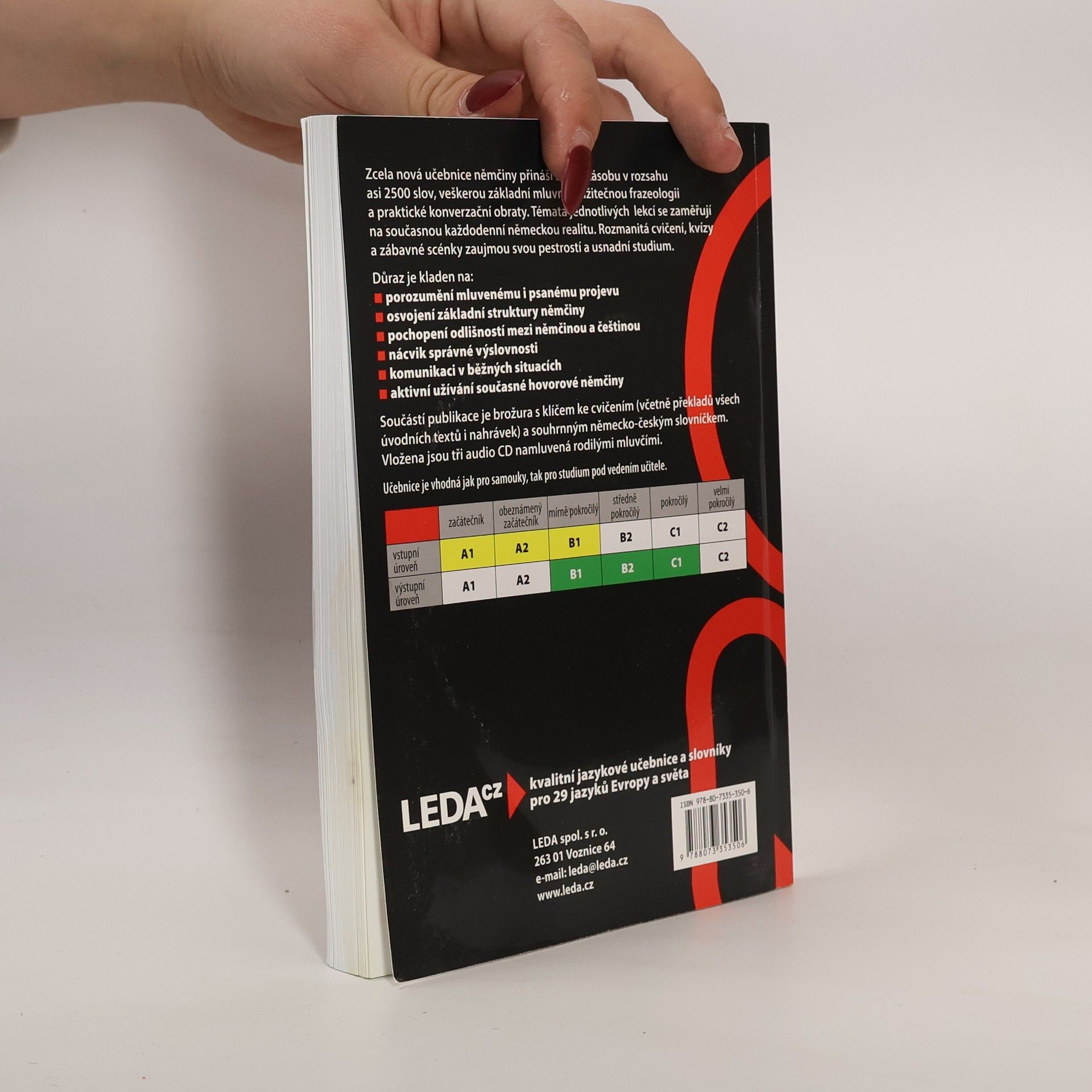 Zcela nová učebnice němčiny přináší slovní zásobu v rozsahu asi 2500 slov, veškerou základní mluvnici, užitečnou frazeologii a praktické konverzační obraty. Témata jednotlivých lekcí reflektují současný každodenní život se zaměřením na německou realitu. Rozmanitá cvičení, kvízy azábavné scénky zaujmou svou pestrostí a usnadní studium. Důraz je kladen na: - porozumění mluvenému i psanému projevu - osvojení základní struktury němčiny - pochopení odlišností mezi němčinou a češtinou - nácvik správné výslovnosti - zvládnutí komunikace v běžných situacích - aktivní užívání současné hovorové němčiny Součástí publikace je brožura s klíčem ke cvičením (včetně překladů všech úvodních textů i nahrávek) a souhrnným německo-českým slovníčkem.; Určena je pro uživatele se vstupní úrovní A1 až B1 (začátečník až mírně pokročilý), dosáhnout lze stupně pokročilosti B1 až C1 (mírně pokročilý až pokročilý).