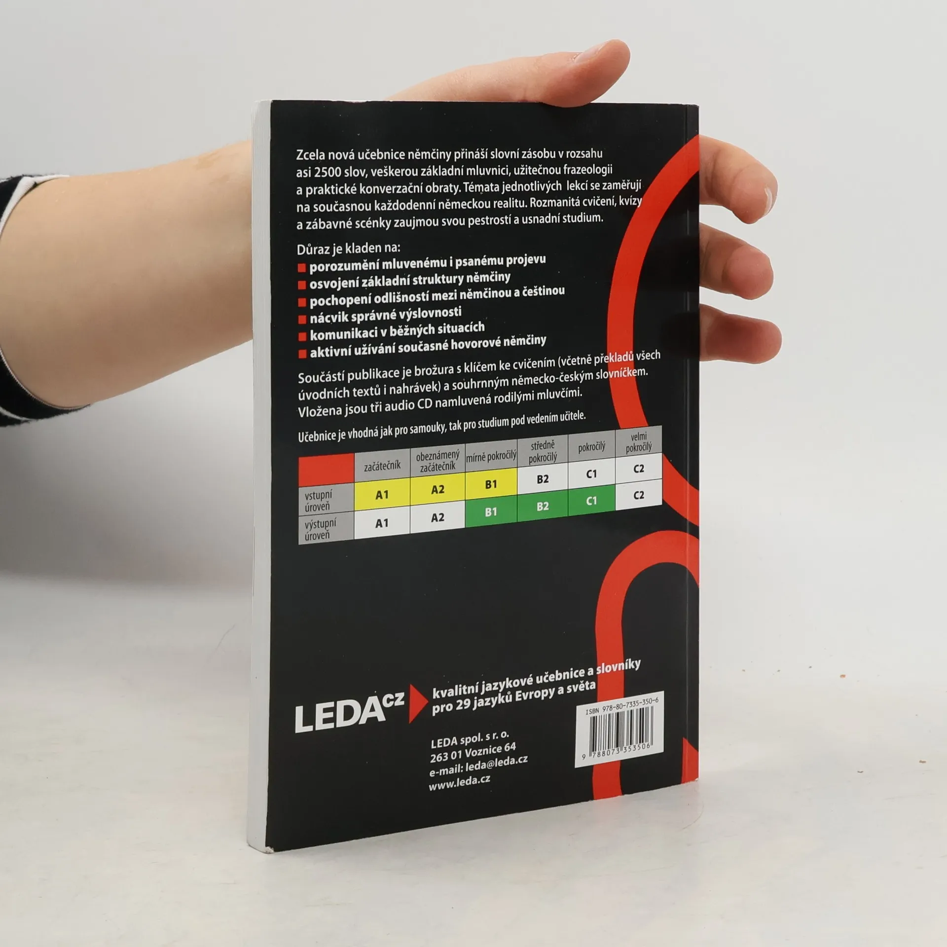 Zcela nová učebnice němčiny přináší slovní zásobu v rozsahu asi 2500 slov, veškerou základní mluvnici, užitečnou frazeologii a praktické konverzační obraty. Témata jednotlivých lekcí reflektují současný každodenní život se zaměřením na německou realitu. Rozmanitá cvičení, kvízy azábavné scénky zaujmou svou pestrostí a usnadní studium. Důraz je kladen na: - porozumění mluvenému i psanému projevu - osvojení základní struktury němčiny - pochopení odlišností mezi němčinou a češtinou - nácvik správné výslovnosti - zvládnutí komunikace v běžných situacích - aktivní užívání současné hovorové němčiny Součástí publikace je brožura s klíčem ke cvičením (včetně překladů všech úvodních textů i nahrávek) a souhrnným německo-českým slovníčkem.; Určena je pro uživatele se vstupní úrovní A1 až B1 (začátečník až mírně pokročilý), dosáhnout lze stupně pokročilosti B1 až C1 (mírně pokročilý až pokročilý).