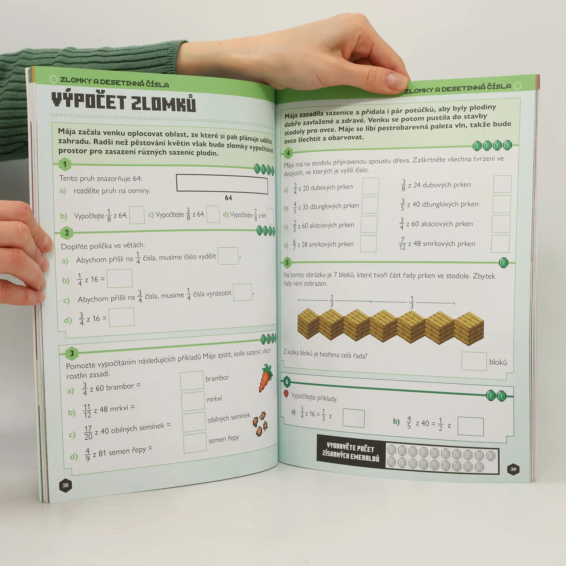 Užijte si matematiku díky Minecraftu!Vyřešte úlohy z matematiky a pomozte tím hrdinům ze světa Minecraftu na jejich misích. Prozkoumejte v každém tématu různé biomy, získejte během procházení knihou emeraldy a zvolte si, jak s nimi naložíte.