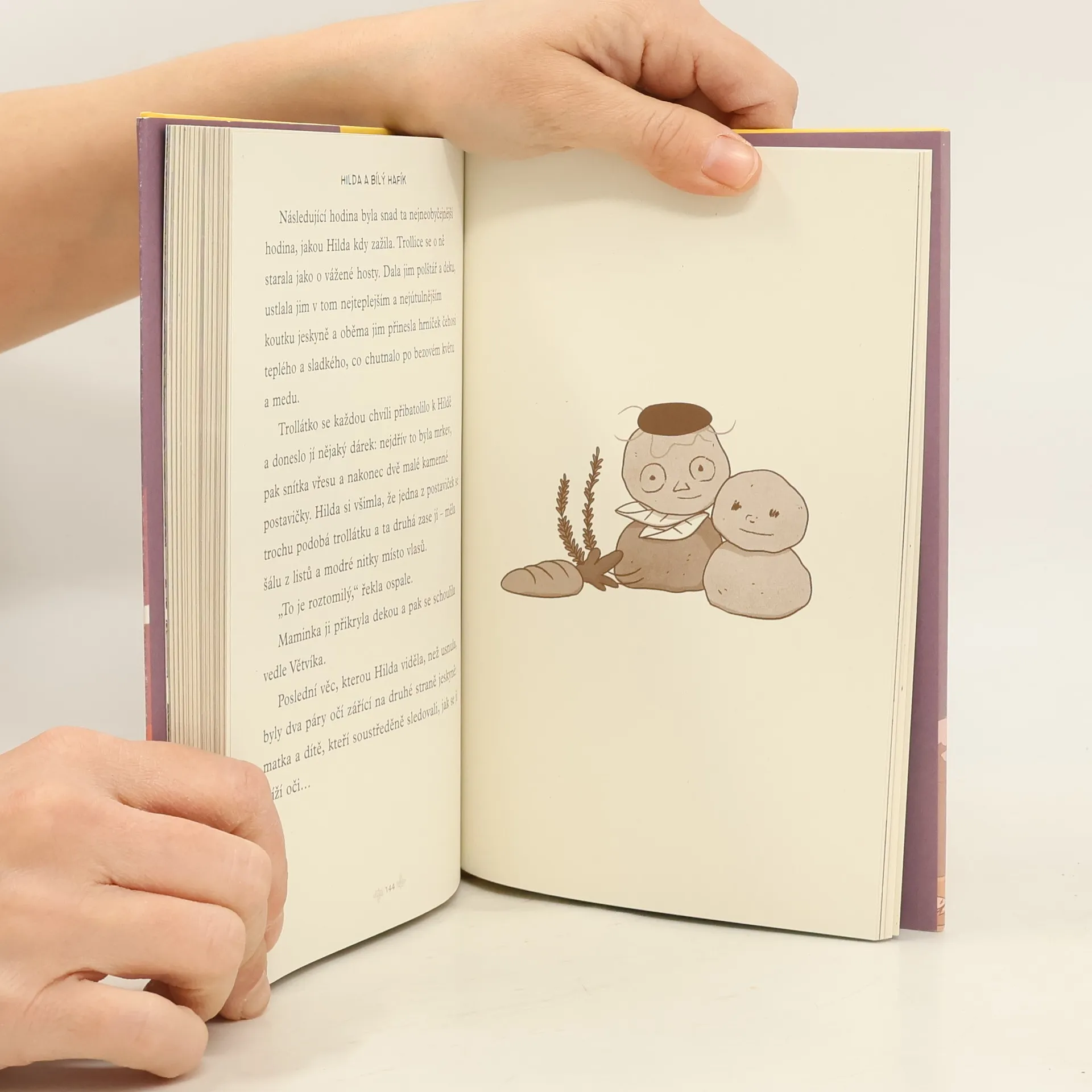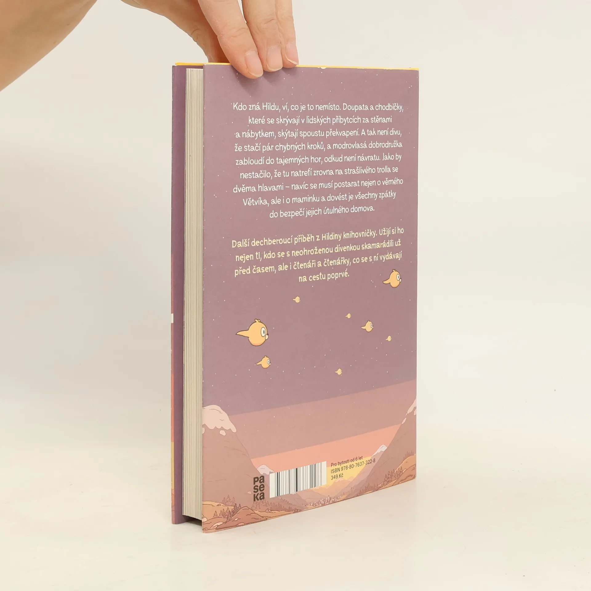Kdo zná Hildu, ví také, co je to nemísto. Doupata a chodbičky, které se skrývají v lidských příbytcích za stěnami a nábytkem, skýtají spoustu překvapení. A tak není divu, že stačí pár chybných kroků, a modrovlasá dobrodružka zabloudí do tajemných hor, odkud není návratu. Jako by nestačilo, že tu natrefí zrovna na strašlivého trolla se dvěma hlavami – navíc se musí postarat nejen o věrného Větvíka, ale i o maminku a dovést je všechny zpátky do bezpečí jejich útulného domova. Další dechberoucí příběh z Hildiny knihovničky, který si užijí nejen ti, kdo se s neohroženou dívenkou skamarádili už před časem, ale i čtenáři a čtenářky, co se s ní vydávají na cestu poprvé.