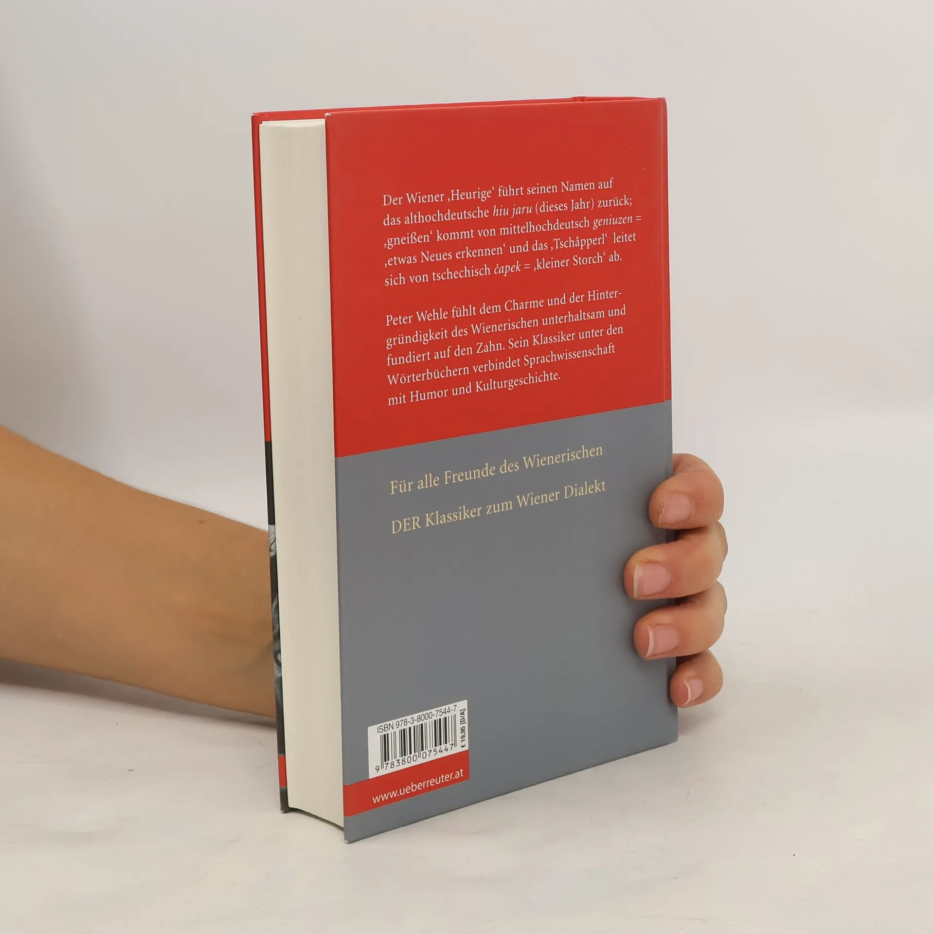 Was ein Hallodri ist, weiß jeder, aber wussten Sie, dass „gneißen“ von mittelhochdeutsch „geniuzen“ = „etwas Neues erkennen“ kommt? Oder dass sich „Tschapperl“ von tschechisch „capek“ = „kleiner Storch“ ableitet? Peter Wehle fühlt dem Wiener Dialekt fundiert und zugleich unterhaltsam auf den Zahn. Sein Klassiker unter den Wörterbüchern verbindet Sprachwissenschaft mit Humor und Kulturgeschichte.
