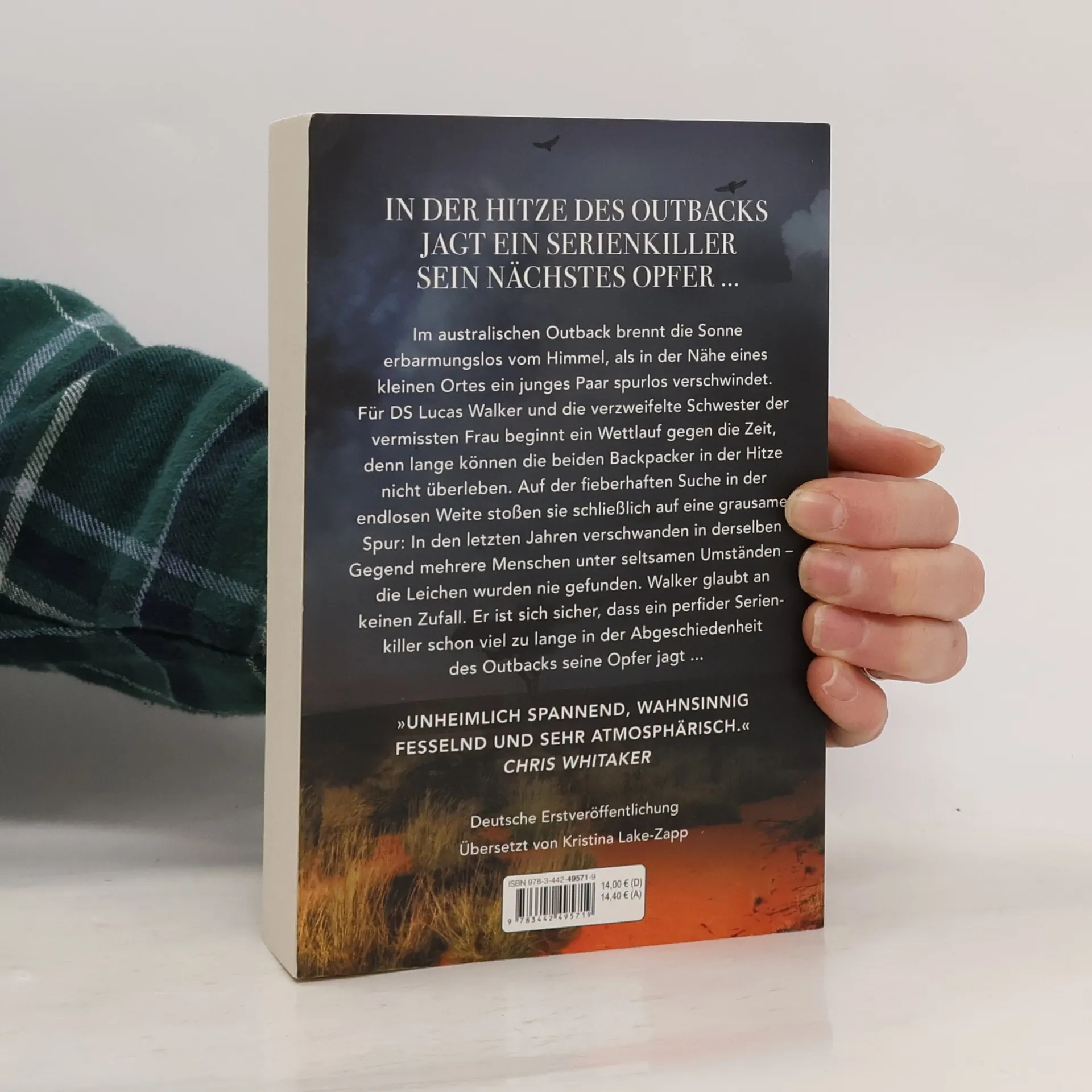 Im heißen Outback Australiens entfaltet sich ein spannungsgeladener Thriller, in dem ein Serienkiller auf der Suche nach seinem nächsten Opfer ist. Die drückende Atmosphäre und die unbarmherzige Landschaft verstärken die Bedrohung, während die Protagonisten versuchen, dem Mörder auf die Spur zu kommen. Intrigen und unerwartete Wendungen halten die Leser in Atem, während sie in die Abgründe der menschlichen Psyche eintauchen. Die Geschichte thematisiert nicht nur den Kampf ums Überleben, sondern auch die dunklen Geheimnisse, die in der Einsamkeit verborgen liegen.