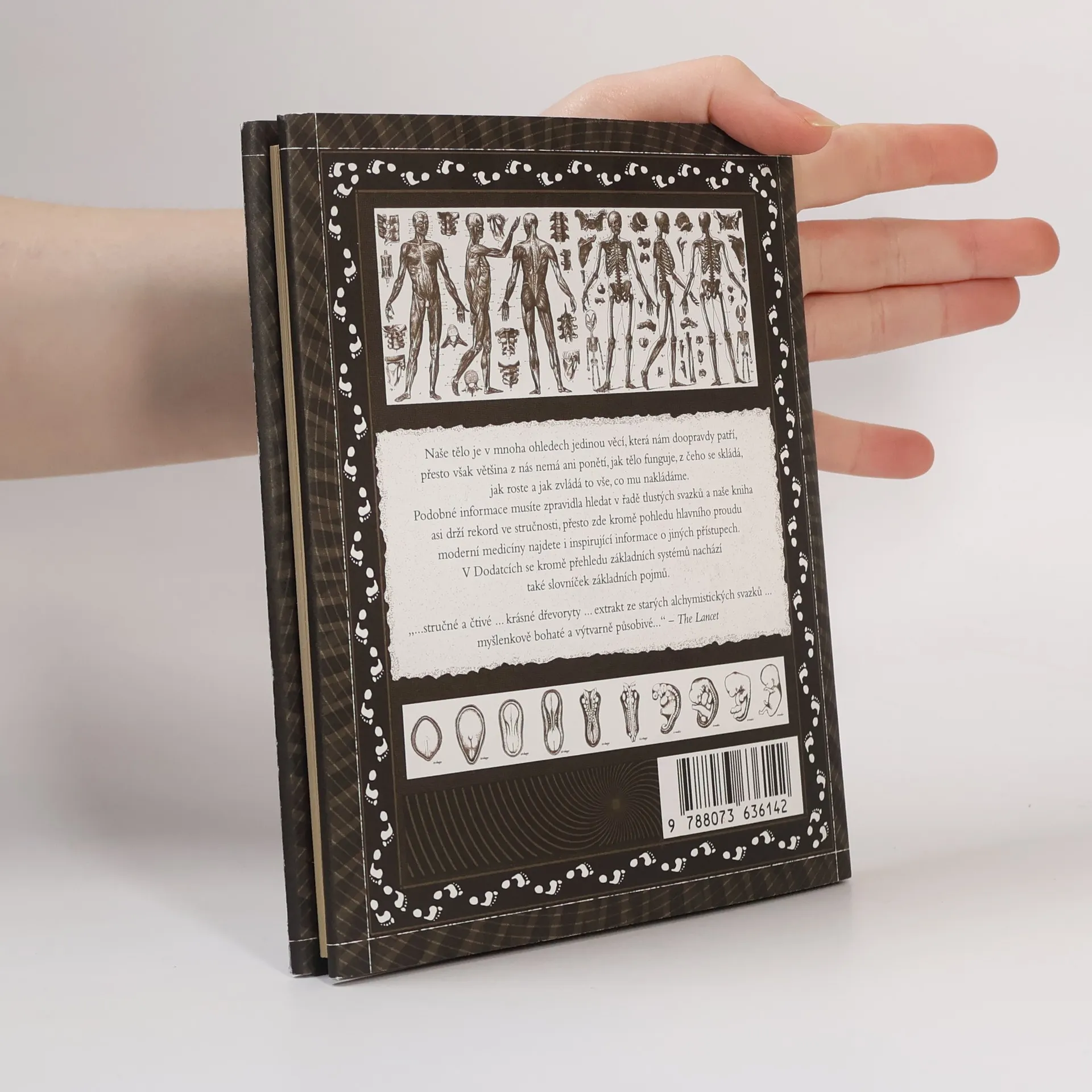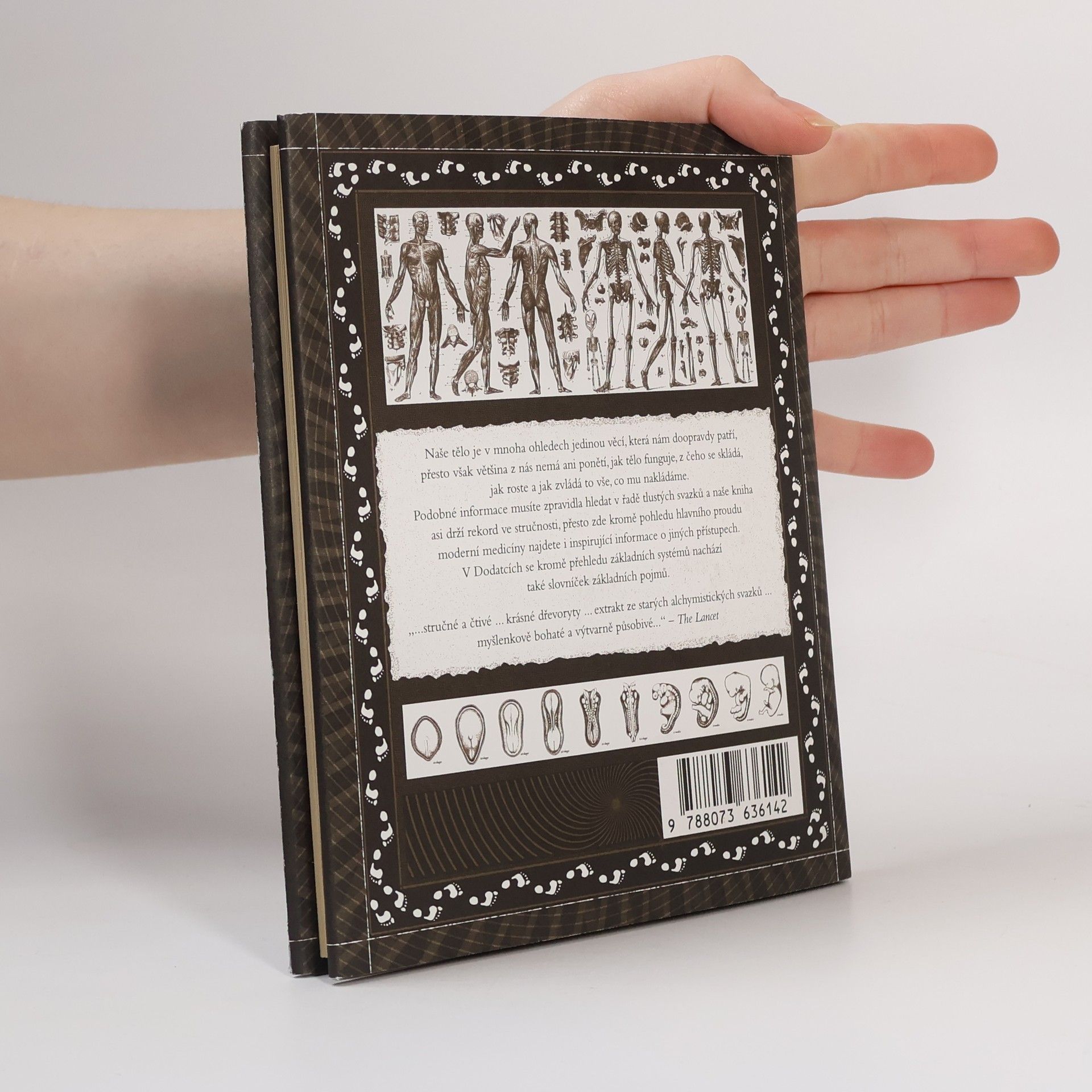Výpravná a graficky působivá kniha nás seznamuje s vývojem porozumění anatomii lidského těla. Výklad se pohybuje v prostoru od indických čaker a čínských akupunkturních drah až po poslední objevy medicíny, od jednobuněčného embrya po dospělého jednice a seznamuje nás s hlavními orgánovými systémy a jejich kooperací, rolí mikroorganismů i cholesterolu při látkové výměně, důvody zrcadlového vztahu mezi ledvinami a plicemi i fungováním dědičnosti. Velké množství půvabných starých rytin i novodobých ilustrací přispěje k tomu, že se k poučení přidá i estetický prožitek.