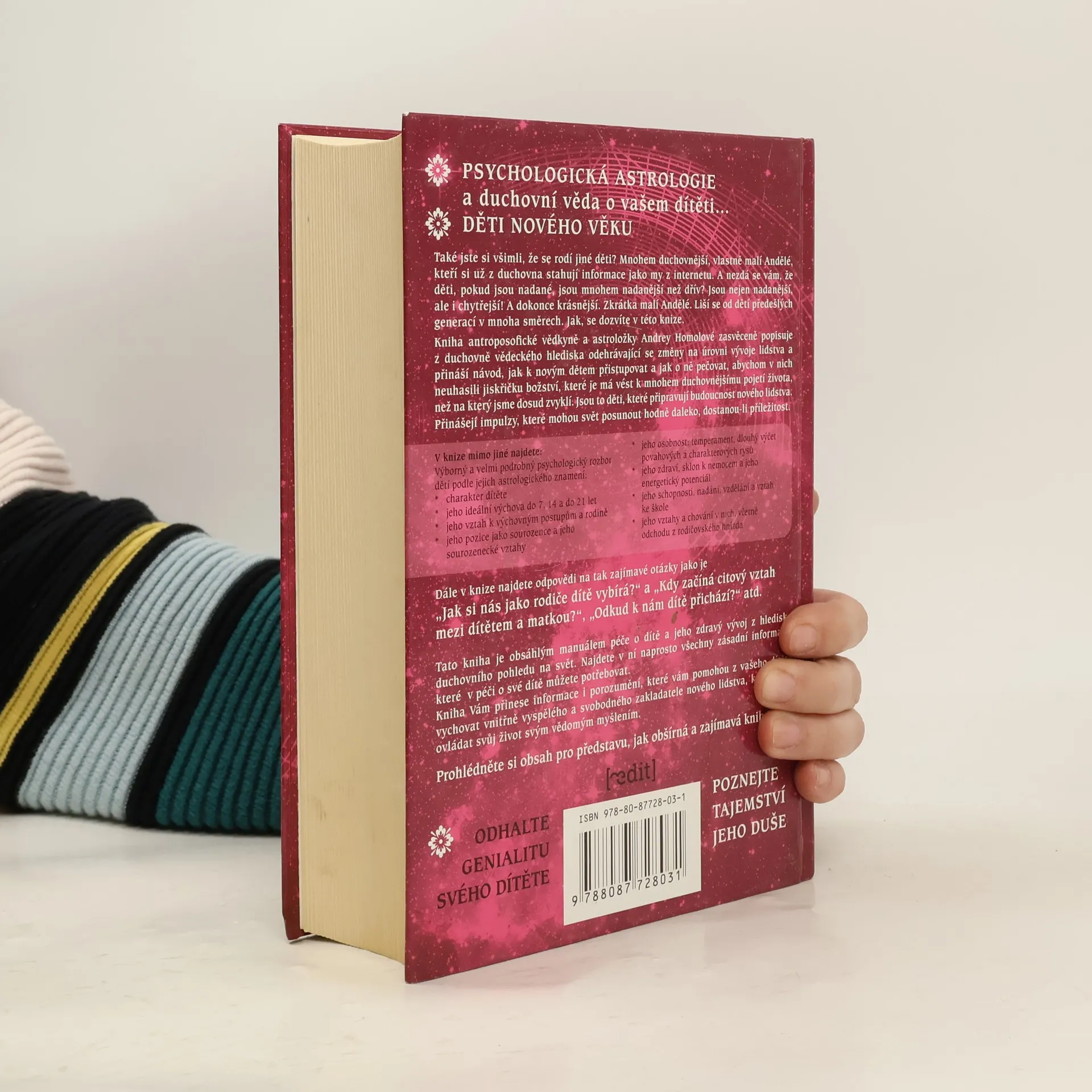 Tato kniha je obsáhlým manuálem péče o dítě a jeho zdravý vývoj z hlediskaduchovního pohledu na svět. Najdete v ní naprosto všechny zásadní informace, které v péči o své dítě můžete potřebovat. Kniha Vám přinese informace i porozumění, které vám pomohou z vašeho dítětevychovat vnitřně vyspělého a svobodného zakladatele nového lidstva, který bude ovládat svůj život svým vědomým myšlením.