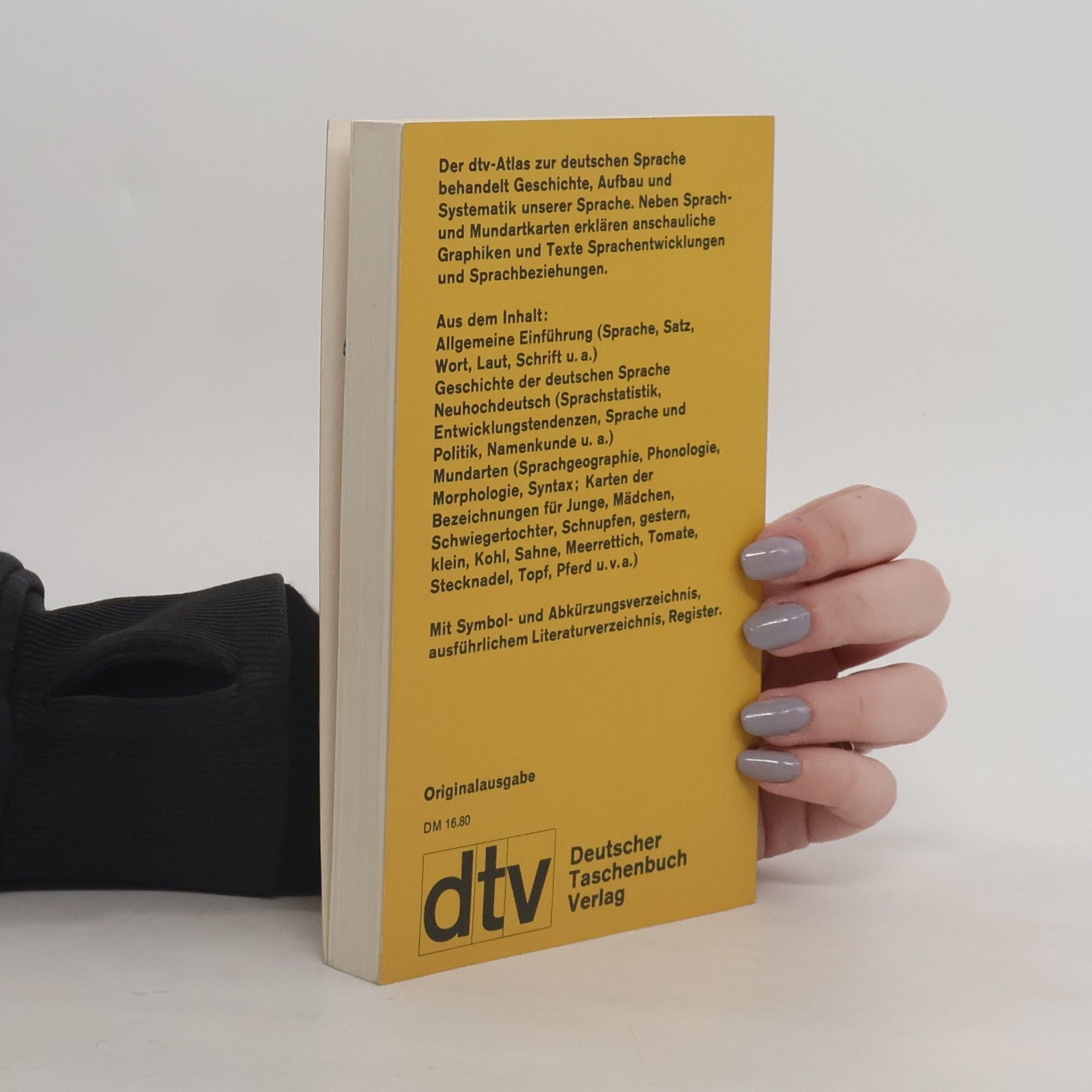 Mit 155 farbigen AbbildungsseitenGrafiker: Hans-Joachim Paul und Werner Wildermuth Der ›dtv-Atlas Deutsche Sprache‹ behandelt Geschichte, Aufbau und Systematik unserer Sprache. In einer übersichtlichen Einführung erläutert er Grundsätzliches zu Sprache, Wort, Lautbildung und Schrift. Zusätzlich zeichnet der Text mit Hilfe zahlreicher Grafiken die Sprachentwicklung vom Indogermanischen bis zum Neuhochdeutschen nach und verdeutlicht die verschiedenen Sprachbeziehungen. Damit ist der Atlas nicht nur ein kompetentes Grundlagenwerk für Sprachwissenschaftler und alle an der deutschen Sprachgeschichte und -entwicklung interessierten Leser. Auch jene Menschen, die sich z. B. nach einem Umzug beim Bestellen des Handwerkers oder beim Einkauf in der Bäckerei nicht verstanden fühlen, finden in den Mundartkarten die regional jeweils »richtige« Bezeichnung für z. B. »Klempner« oder »Brötchen«. Aus dem Inhalt: Allgemeine Einführung (Sprache, Satz, Wort, Laut, Schrift u. a.). Geschichte der deutschen Sprache. Neuhochdeutsch (Sprachstatistik, Entwicklungstendenzen, Sprache und Politik, Namenkunde u. a.). Mundarten (Sprachgeographie, Phonologie, Morphologie, Syntax; Karten der Bezeichnungen für z. B. Junge, Mädchen, Schwiegertochter, Schnupfen, gestern, Sahne, Tomate, Gurke, Topf, Pferd). Umgangssprachen (Karten der Bezeichnungen für z. B. Brötchen, zwicken) Mit Literaturverzeichnis und Register