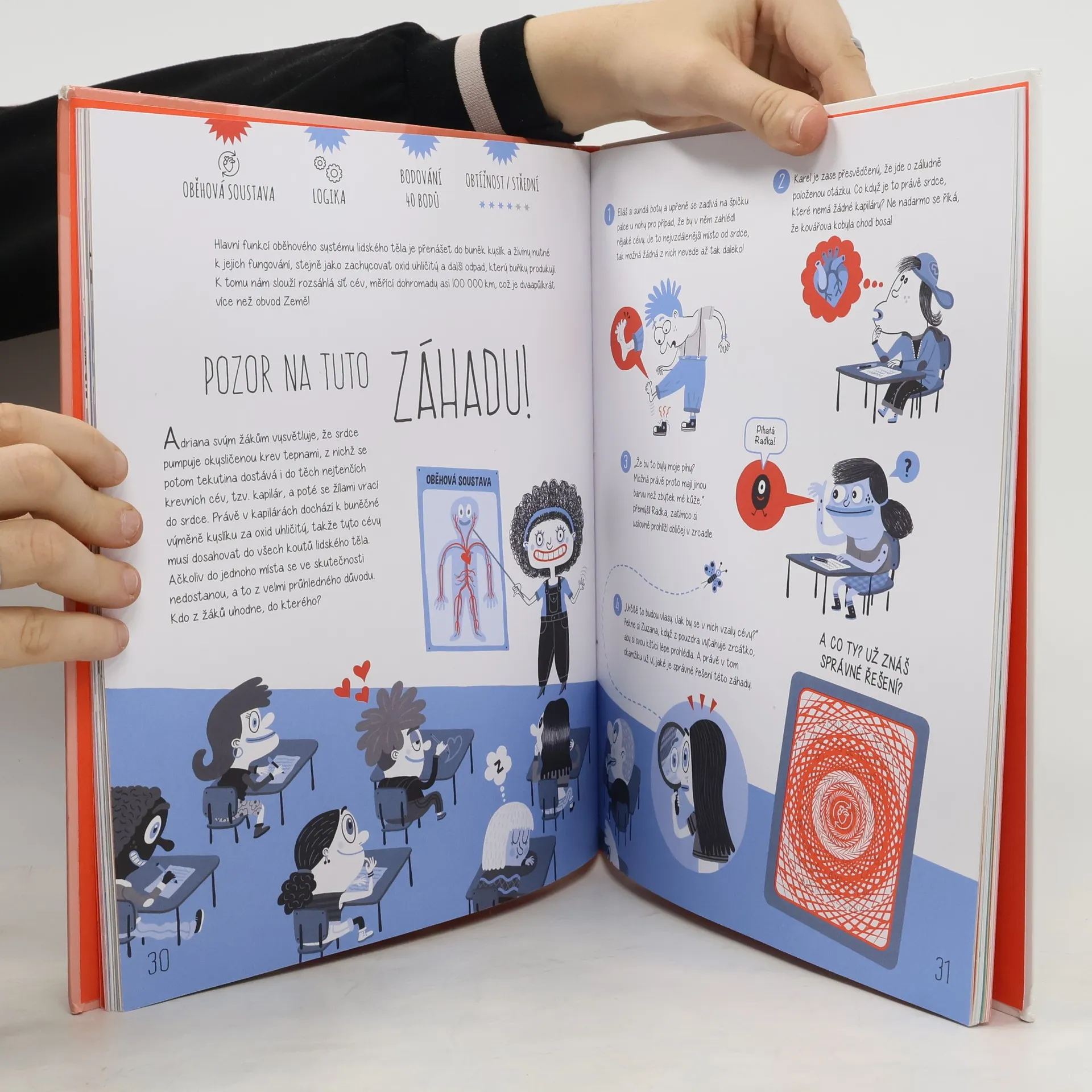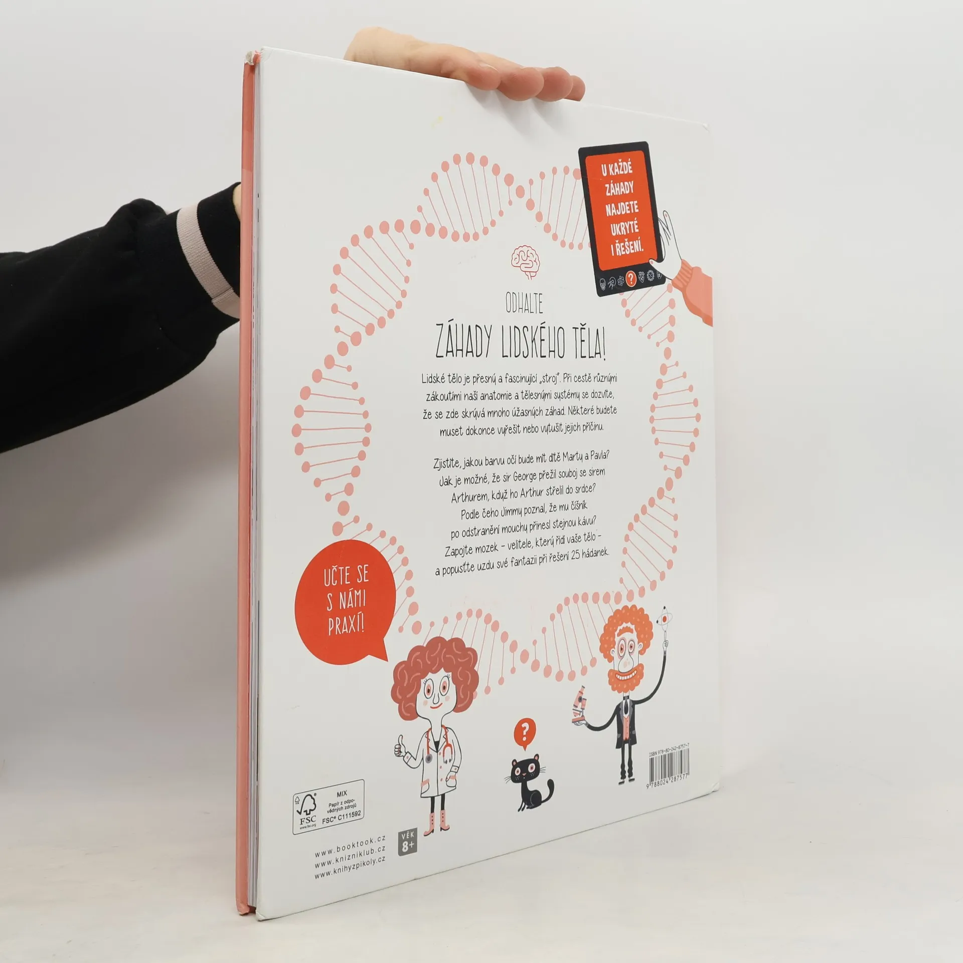 Lidské tělo je přesný a fascinující mechanismus. Vydejte se s námi na cestu různými zákoutími naší anatomie a tělesných systémů. Staňte se detektivy lidského těla. Dozvíte se nejen spoustu informací ale také to, že skrývá několik úžasných záhad. Některým budete muset i sami přijít na kloub. Podaří se vám zjistit, jakou barvu očí bude mít dítě Maleny a Ariela? Proč sir George přežije souboj se sirem Artušem, který ho předtím střelil do srdce? Jak Jimmy ví, že mu číšník po vylovení mouchy přinesl stejnou kávu? Zapojte mozek i fantazii a vyřešte 25 hádanek!