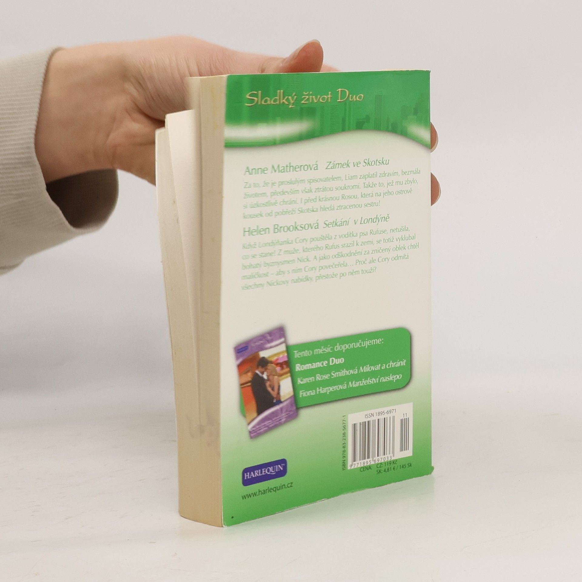 A. Mather - Zámek ve Skotsku Za to, že je proslulým spisovatelem, Liam zaplatil zdravím, bezmála životem, především však ztrátou soukromí. Takže to, jež mu zbylo, si úzkostlivě chrání. I před krásnou Rosou, která na jeho ostrově kousek od pobřeží Skotska hledá ztracenou sestru! H. Brooks - Setkání v Londýně Když Londýňanka Cory pouštěla z vodítka psa Rufuse, netušila, co se stane! Z muže, kterého Rufus srazil k zemi, se totiž vyklubal bohatý byznysmen Nick. A jako odškodnění za zničený oblek chtěl maličkost - aby s ním Cory povečeřela... Proč ale Cory odmítá všechny Nickovy nabídky, přestože po něm touží?