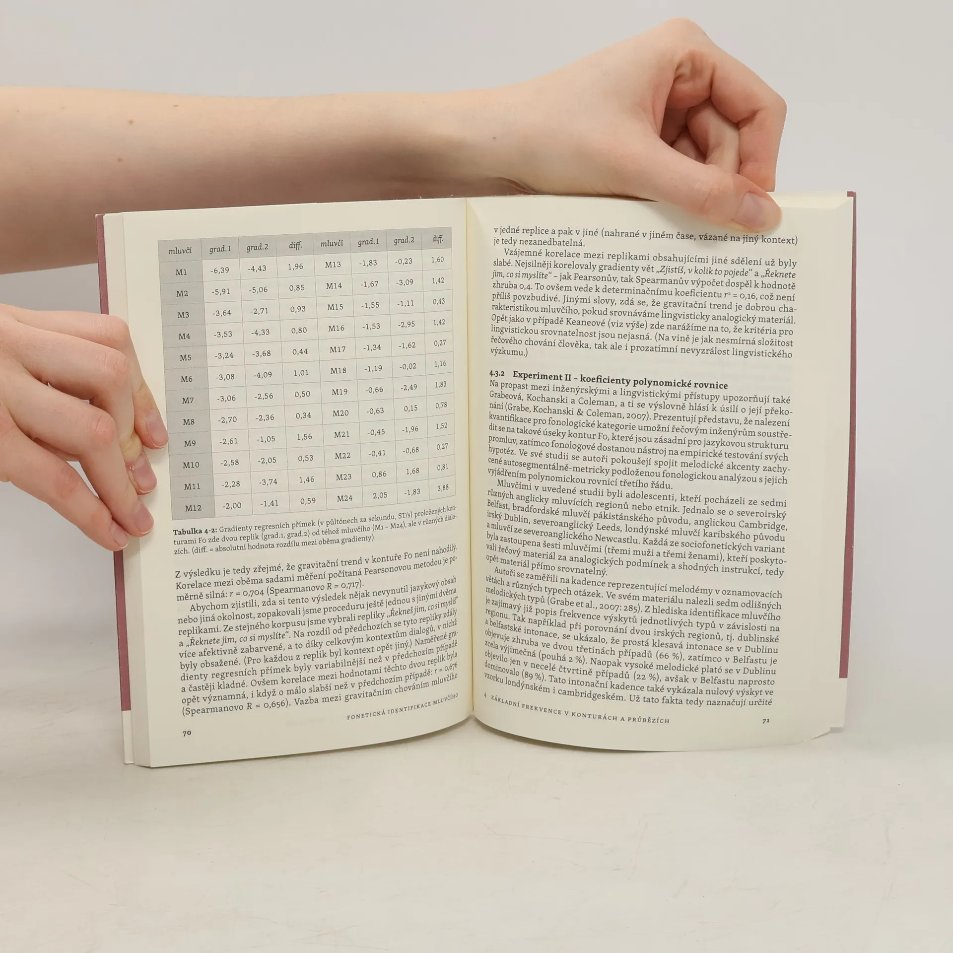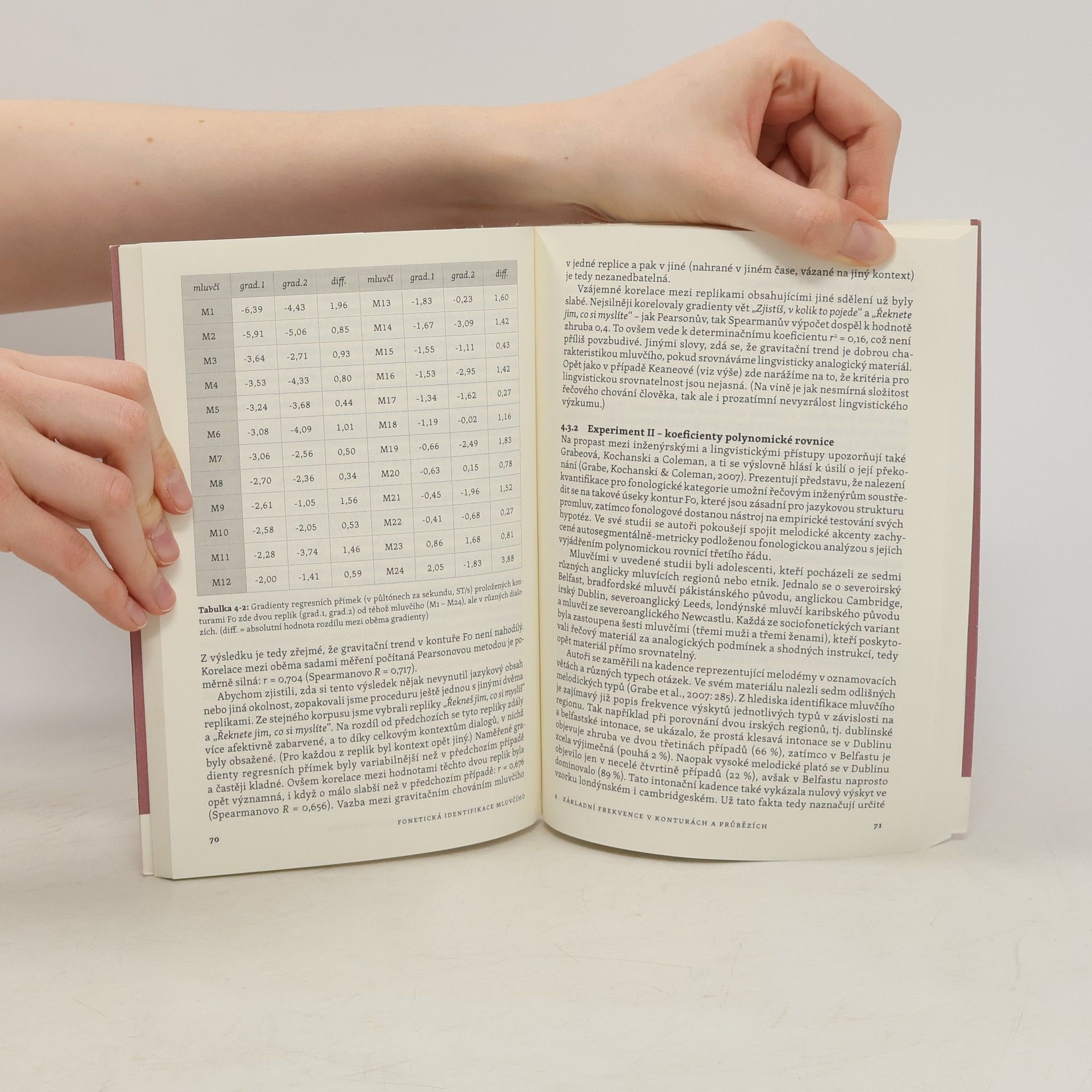 Díky mobilním telefonům jsou nahrávky lidského hlasu stále dostupnější a mnohdy se stávají předmětem policejního vyšetřování. Tato publikace se zabývá možnostmi identifikace mluvčího z řečového signálu, ale zároveň ve vybraných oblastech doplňuje či aktualizuje popis zvukového plánu češtiny. Po krátkém úvodu do forenzní fonetiky jakožto aplikované disciplíny se jednotlivé kapitoly věnují různým akustickým parametrům a jejich schopnosti rozlišovat od sebe mluvčí. Nejprve se jedná o samohláskové formanty (rezonanční frekvence samohláskových zvuků), dále pak o střední ukazatele i průběhy základní frekvence (již si nejčastěji spojujeme s výškou hlasu). Další kapitoly se věnují kvalitě hlasu a temporálním ukazatelům, jakými jsou například mluvní tempo nebo řečový rytmus. Kniha se věnuje i metodologickým aspektům, konkrétně vlivu telefonního přenosu na výše uvedené akustické parametry a způsobům vyhodnocování důkazního materiálu ve forenzní praxi, a shrnuje současnou situaci ve forenzně fonetické praxi.