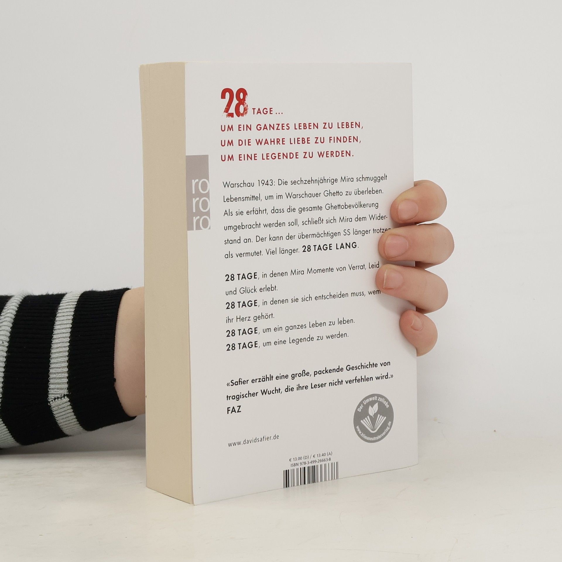28 Tage ... ... um ein ganzes Leben zu leben, um die wahre Liebe zu finden, um eine Legende zu werden. Warschau 1943: Die sechzehnjährige Mira schmuggelt Lebensmittel, um im Warschauer Ghetto zu überleben. Als sie erfährt, dass die gesamte Ghettobevölkerung umgebracht werden soll, schließt sich Mira dem Widerstand an. Der kann der übermächtigen SS länger trotzen als vermutet. Viel länger. 28 Tage lang.28 Tage, in denen Mira Momente von Verrat, Leid und Glück erlebt.28 Tage, in denen sie sich entscheiden muss, wem ihr Herz gehört.28 Tage, um ein ganzes Leben zu leben.28 Tage, um eine Legende zu werden.
