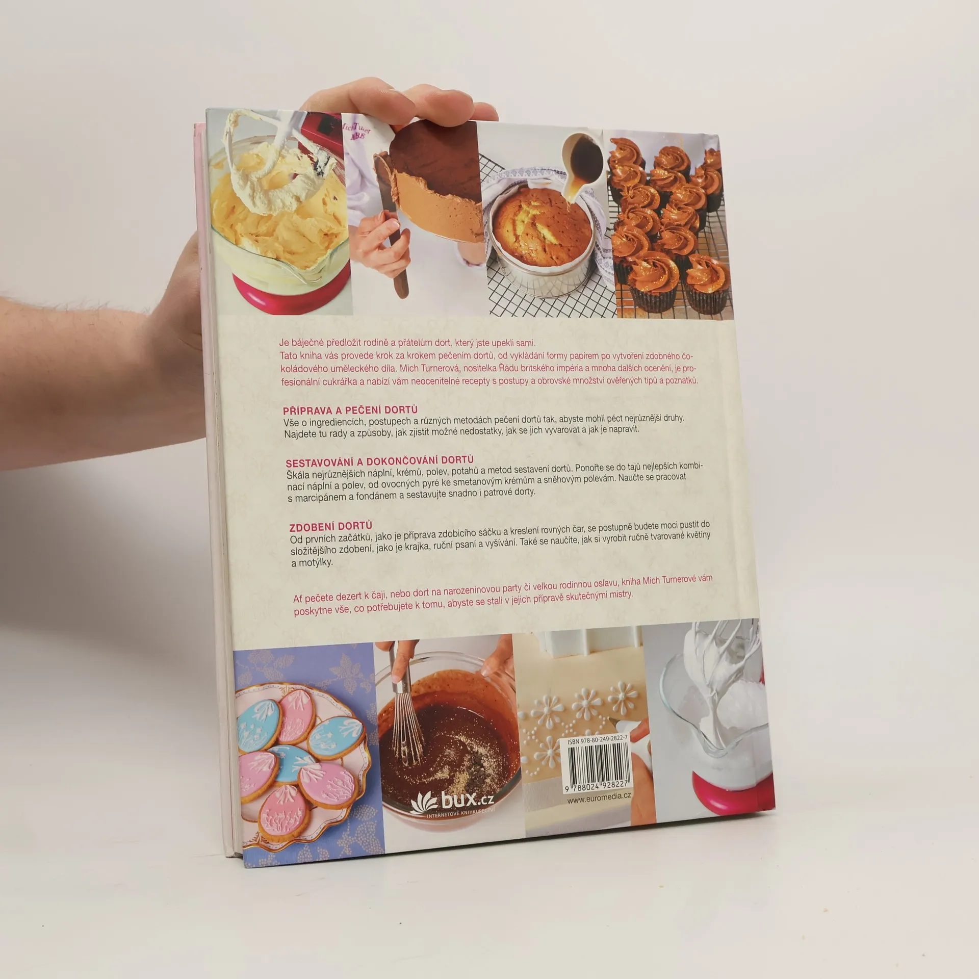 Mich Turnerová. Její dorty zdobí stoly Madonny, Pierce Brosnana nebo Davida Beckhama. Jedna z nejlepších profesionálních cukrářek vás uvede do světa pečení a zdobení originálních dortů a moučníků. Naučte se péct máslové, čokoládové nebo ovocné dorty, nadýchané rolády, mramorky, minidortíky. Dozvíte se, jak správně připravit korpus, čím ho naplnit, jak ho ozdobit, jak pracovat s čokoládou, marcipánem, fondánem a nejrůznějšími polevami. Po absolvování této cukrářské školy si troufnete i na svatební třípatrový!
