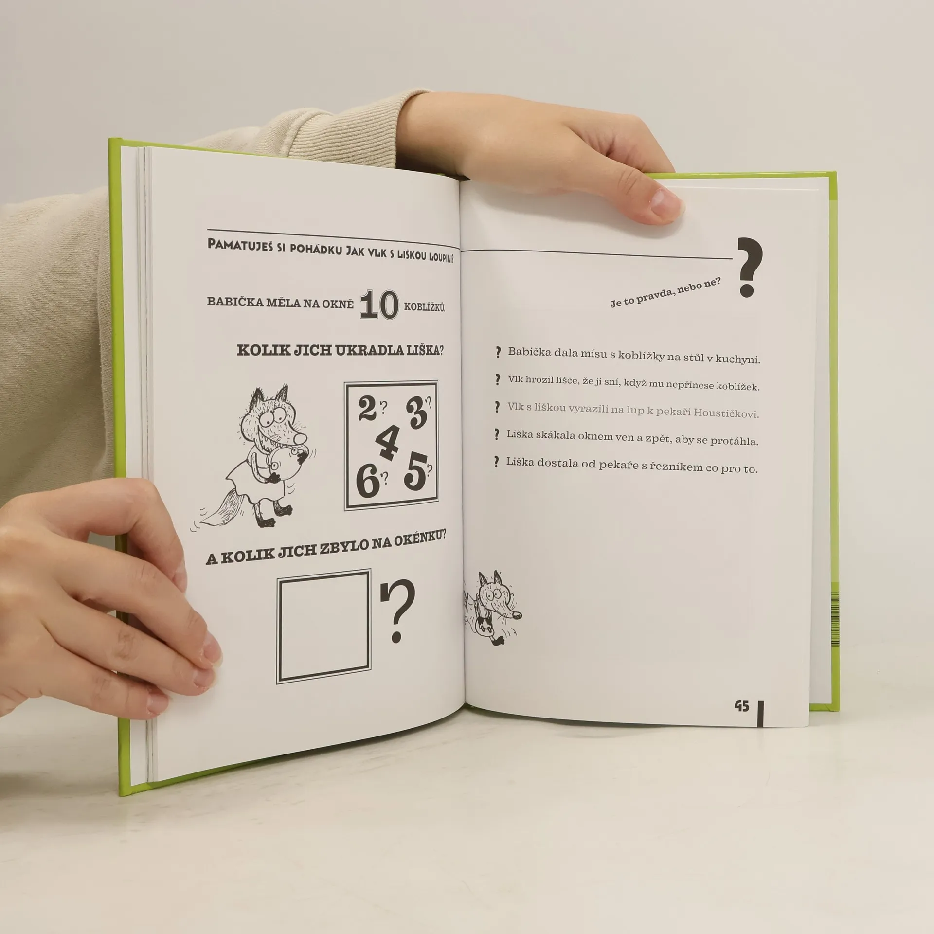 Postava starého, zlomyslneho vlka spojuje tři oohádky, ve kterych jsou desítky slov nahrazeny obrázky. Tzv. "dvojhlasné čtení", kdy dospělý předčítá a dítě doplňuje malovaná slova, hravou formou rozvíjí slovní zásobu dítěte i schopnost reprodukovat vyprávěný text.