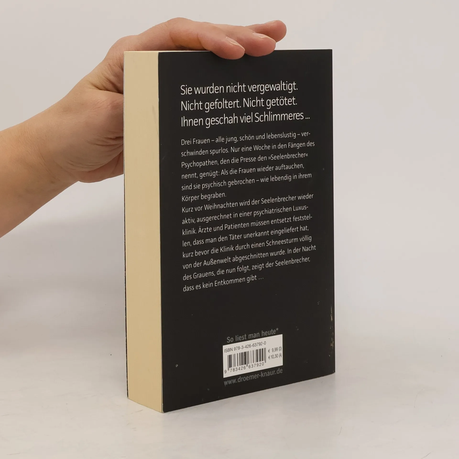 Sebastian Fitzek auf Nervenkitzel-Kurs: Sein bisher härtester Psychothriller! Sie wurden nicht vergewaltigt. Nicht gefoltert. Nicht getötet. Ihnen geschah viel Schlimmeres ... Drei Frauen – alle jung, schön und lebenslustig – verschwinden spurlos. Nur eine Woche in den Fängen des Psychopathen, den die Presse den »Seelenbrecher« nennt, genügt: Als die Frauen wieder auftauchen, sind sie psychisch gebrochen – wie lebendig in ihrem Körper begraben. Kurz vor Weihnachten wird der Seelenbrecher wieder aktiv, ausgerechnet in einer psychiatrischen Luxusklinik. Ärzte und Patienten müssen entsetzt feststellen, dass man den Täter unerkannt eingeliefert hat, kurz bevor die Klinik durch einen Schneesturm völlig von der Außenwelt abgeschnitten wurde. In der Nacht des Grauens, die nun folgt, zeigt der Seelenbrecher, dass es kein Entkommen gibt … Mit psychologischer Raffinesse und atemberaubender Spannung entführt Sebastian Fitzek seine Leser in die dunklen Abgründe der menschlichen Seele.