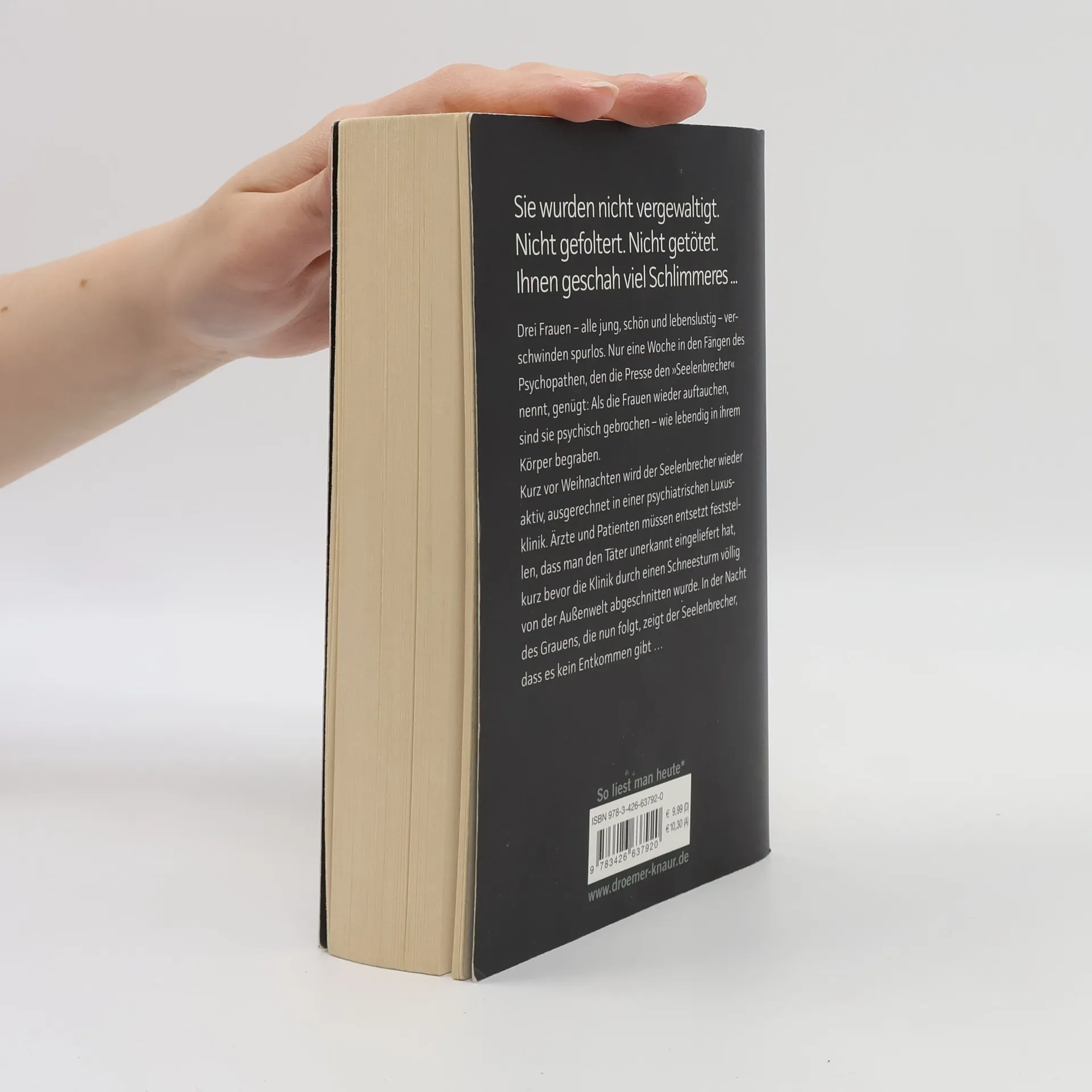 Sebastian Fitzek auf Nervenkitzel-Kurs: Sein bisher härtester Psychothriller! Sie wurden nicht vergewaltigt. Nicht gefoltert. Nicht getötet. Ihnen geschah viel Schlimmeres ... Drei Frauen – alle jung, schön und lebenslustig – verschwinden spurlos. Nur eine Woche in den Fängen des Psychopathen, den die Presse den »Seelenbrecher« nennt, genügt: Als die Frauen wieder auftauchen, sind sie psychisch gebrochen – wie lebendig in ihrem Körper begraben. Kurz vor Weihnachten wird der Seelenbrecher wieder aktiv, ausgerechnet in einer psychiatrischen Luxusklinik. Ärzte und Patienten müssen entsetzt feststellen, dass man den Täter unerkannt eingeliefert hat, kurz bevor die Klinik durch einen Schneesturm völlig von der Außenwelt abgeschnitten wurde. In der Nacht des Grauens, die nun folgt, zeigt der Seelenbrecher, dass es kein Entkommen gibt … Mit psychologischer Raffinesse und atemberaubender Spannung entführt Sebastian Fitzek seine Leser in die dunklen Abgründe der menschlichen Seele.