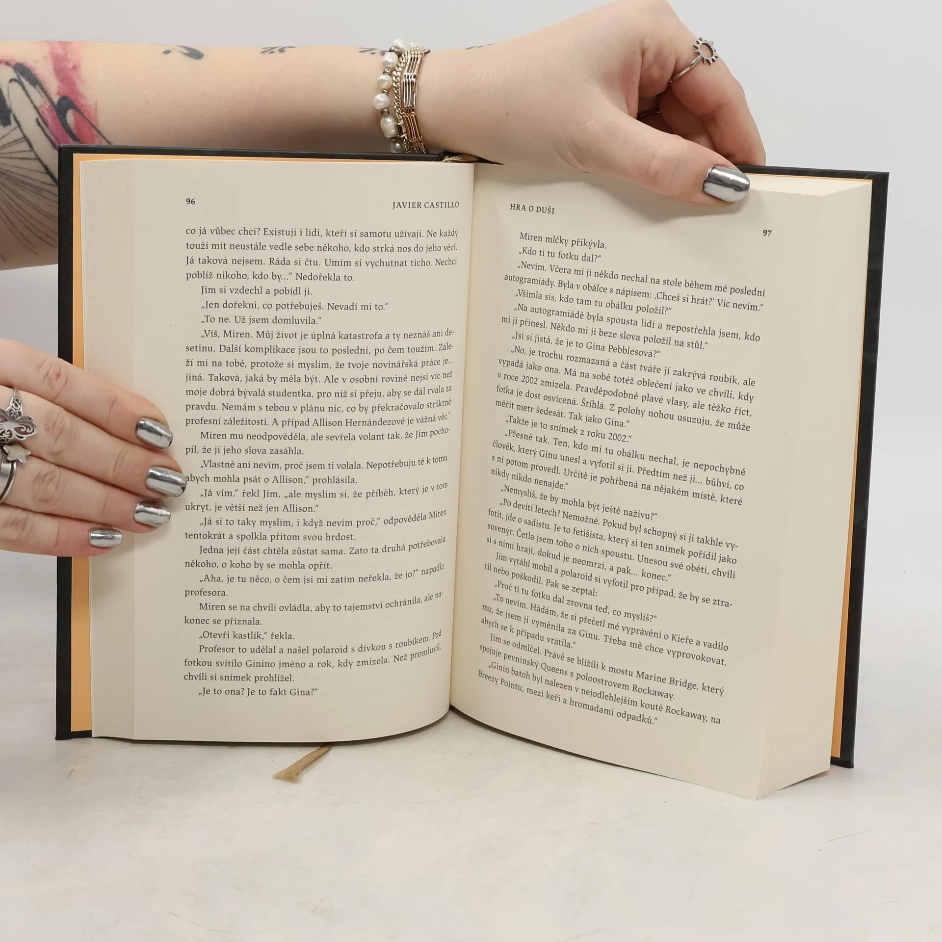 New York, 2011. Na předměstí je objeveno ukřižované patnáctileté děvče a investigativní novinářka Miren Triggsová dostává nečekaným způsobem podivnou obálku. Uvnitř je fotka z polaroidu a na ní další dospívající dívka, svázaná a s roubíkem. Pod snímkem je připsáno jen „GINA PEBBLESOVÁ, 2002.“Miren Triggsová a její někdejší vysokoškolský učitel Jim Schmoer pátrají po stopách dívky z polaroidu a zároveň po ukřižované. Proniknou tak do církevní školy, instituce, která skrývá řadu tajemství.K vyřešení největší záhady musí najít odpovědi na tři otázky, což se zdá prakticky nemožné: Co se stalo Gině? Kdo poslal polaroid? ale hlavně: Jsou oba příběhy propojené?Poté, co prodal více než milion výtisků svých knih, předkládá Javier Castillo čtenářům zneklidňující thriller, v němž je vtáhne do hry plné důvěřivosti i podvodů, lásky i bolesti, podivných rituálů a temného tajemství, které může vše převrátit naruby, bude-li odhaleno.