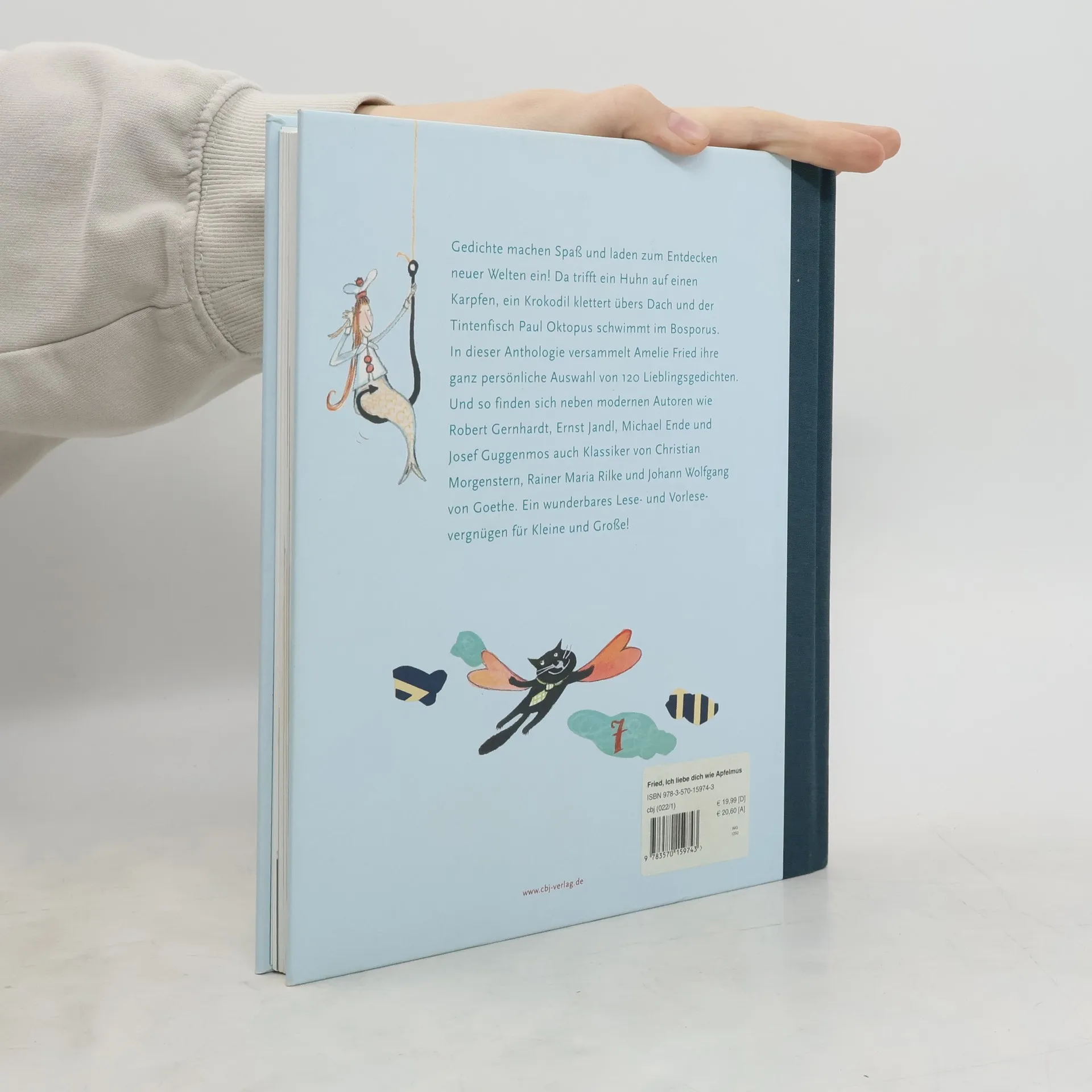 Gedichte schaffen Bilderwelten! Lust auf Lyrik zu machen, mit Versen, Reimen und Gedichten Türen zu öffnen zur magischen Welt der Poesie – das will Amelie Fried mit ihrer ganz persönlichen Sammlung von über 120 Lieblingsgedichten. In dieser Auswahl lyrischer Texte, die Kinder und Erwachsene gleichermaßen begeistern werden, geben sich moderne Autoren wie Robert Gernhardt, Ernst Jandl, Paul Maar, Sarah Kirsch, Joachim Ringelnatz und Josef Guggenmos ein Stelldichein mit Christian Morgenstern, Rainer Maria Rilke oder Johann Wolfgang von Goethe. • Die schönsten deutschsprachigen Gedichte für Kinder • Fantasievoll und farbenprächtig illustriert von Sybille Hein • Als Geschenkbuch edel ausgestattet mit einem hochwertigem Halbleinen-Einband Ausstattung: Mit fbg. Illustrationen