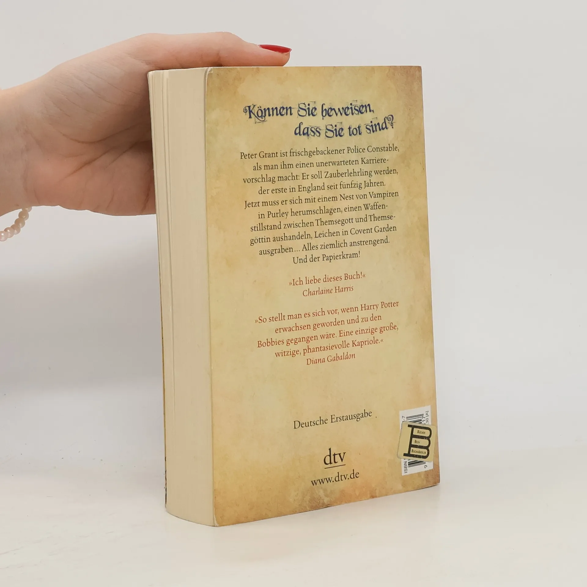»Können Sie beweisen, dass Sie tot sind?« Peter Grant ist Police Constable in London mit einer ausgeprägten Begabung fürs Magische. Was seinen Vorgesetzten nicht entgeht. Auftritt Thomas Nightingale, Polizeiinspektor und außerdem der letzte Zauberer Englands. Er wird Peter in den Grundlagen der Magie ausbilden. Ein Mord in Covent Garden führt den frischgebackenen Zauberlehrling Peter auf die Spur eines Schauspielers, der vor 200 Jahren an dieser Stelle den Tod fand. »Mein Name ist Peter Grant. Ich bin seit Neuestem Police Constable und Zauberlehrling, der erste seit fünfzig Jahren. Mein Leben ist dadurch um einiges komplizierter geworden. Jetzt muss ich mich mit einem Nest von Vampiren in Purley herumschlagen, einen Waffenstillstand zwischen Themsegott und Themsegöttin herbeiführen, Leichen in Covent Garden ausgraben. Ziemlich anstrengend, kann ich Ihnen sagen – und der Papierkram!«
